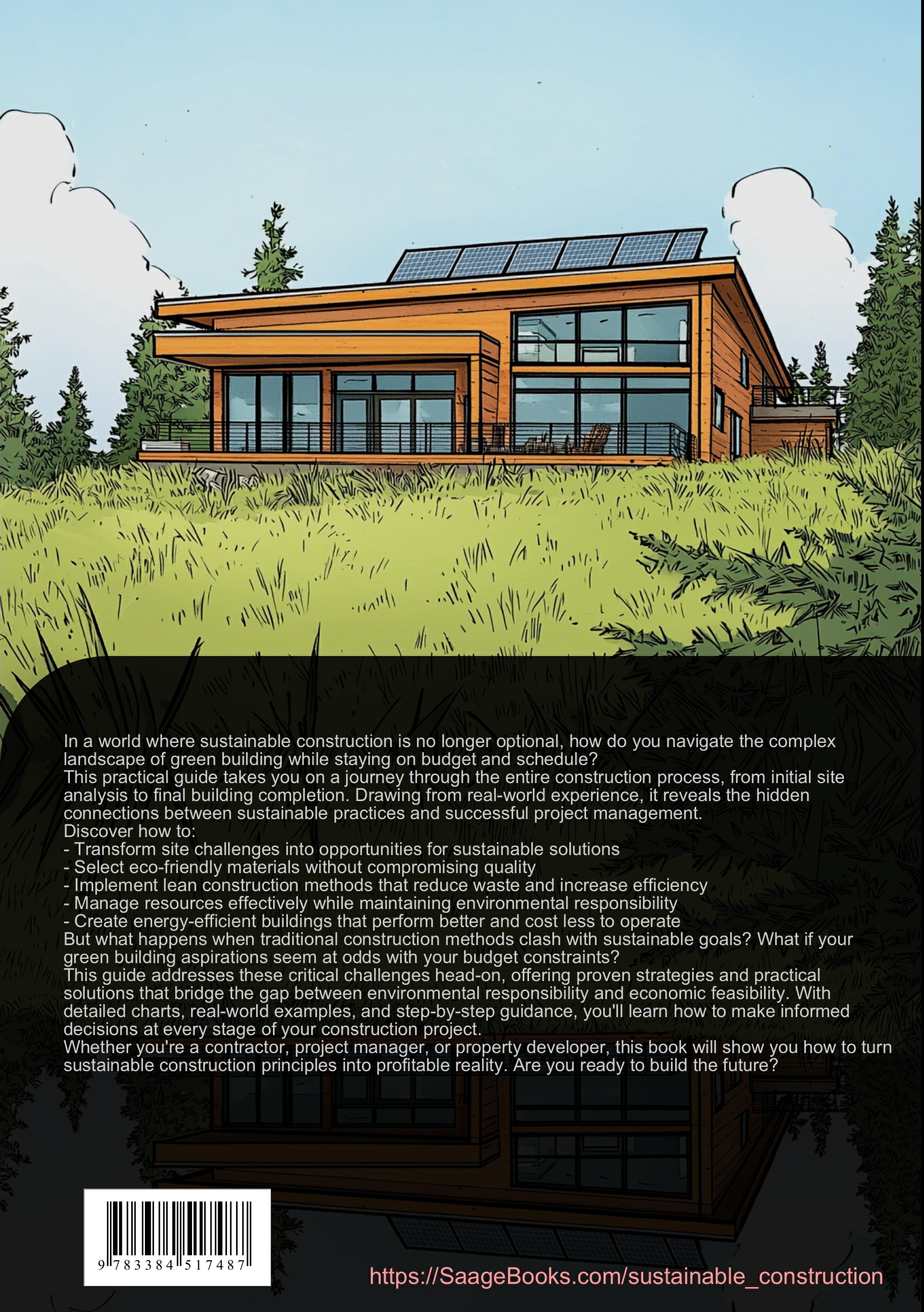 This comprehensive guide focuses on sustainable building practices and efficient construction project management, providing practical insights into modern green building supply and lean construction methods.The book is structured into five main sections covering all essential aspects of sustainable construction:1. Sustainable Construction Planning- Site analysis including soil conditions and topography- Climate considerations and infrastructure assessment- Project structuring and cost management2. Sustainable Architecture- Energy-efficient building design- Space planning and daylight utilization- Selection of ecological building materials- Renewable energy systems integration3. Construction Management- Construction site organization and logistics- Quality assurance procedures- Trade coordination and scheduling- Resource management strategies4. Resource Efficiency- Water management systems- Waste reduction strategies- Energy optimization during construction- Transportation and machinery utilization5. Project Completion- Quality control and building certification- Systems optimization and monitoring- Consumption tracking and analysisReaders will learn how to build a house using proven lean construction methods while maintaining high environmental standards. The book provides detailed information about green building supply chains, construction site management, and practical implementation of sustainable building practices.This guide is suitable for construction managers, architects, builders, and anyone interested in sustainable construction methods. It combines theoretical knowledge with practical applications, supported by charts, diagrams, and real-world examples.This book was created using innovative technologies such as Artificial Intelligence and specially developed tools - for example, in brainstorming, research, writing, editing, quality assurance, and the design of decorative illustrations.In this way, we want to offer you a particularly coherent, modern, and even higher-quality reading experience.