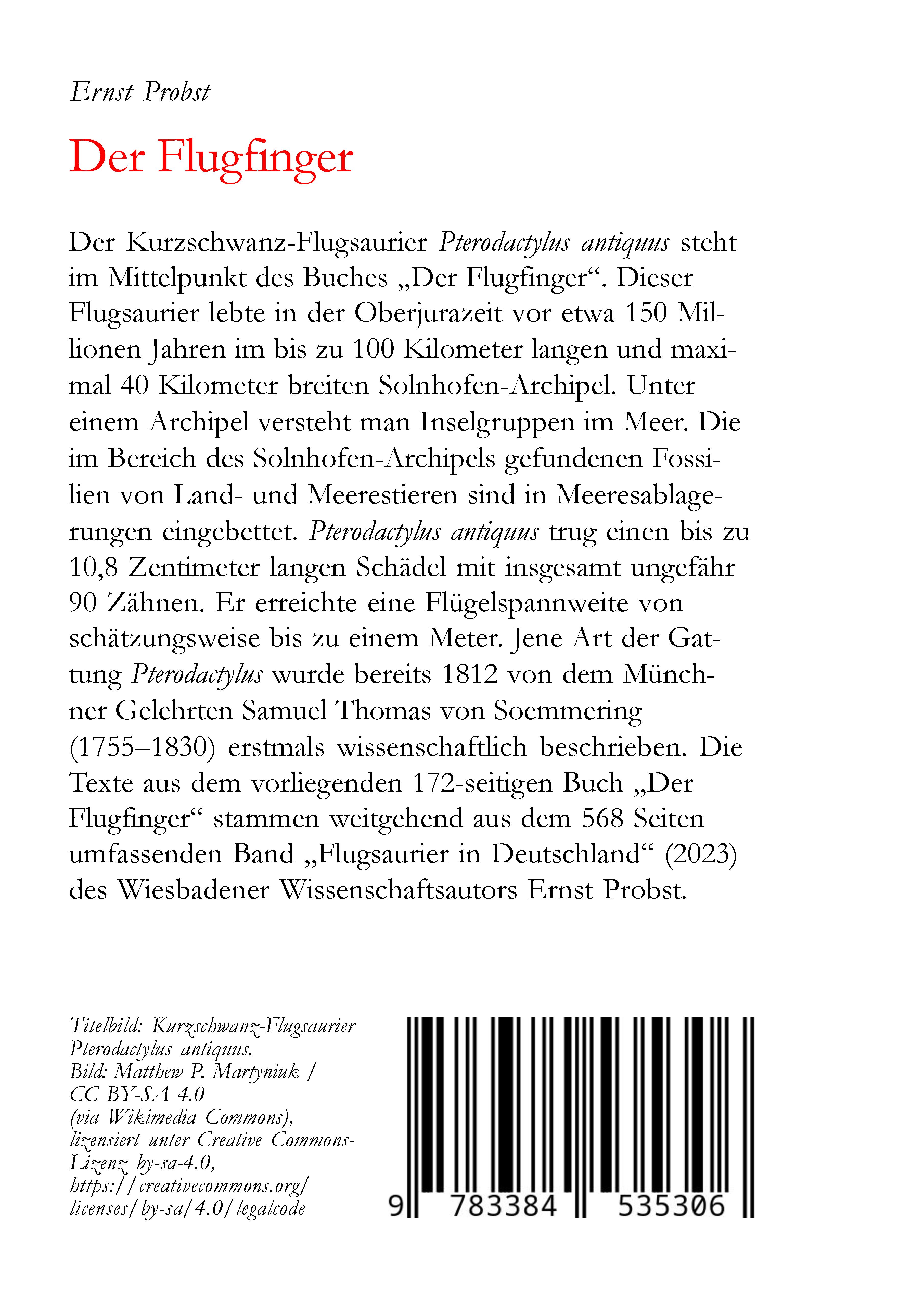 | Schlagworte | Eichstätt • Ernst Probst • Flugfinger • Flugsaurier • Kurzschwanz-Flugsaurier • Oberjura • Oberjurazeit • Peterodactylus • Pterodactylus antiquus • Pterosaurier • Solnhofen • Solnhofen-Archipel |