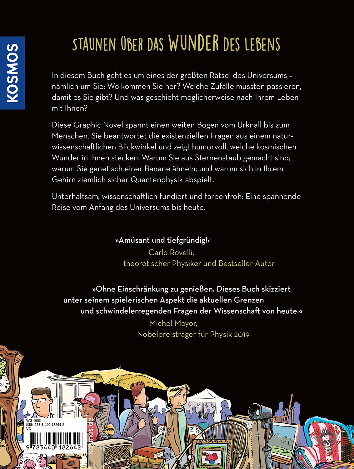 Auf 224 Seiten beantwortet „Cosmix“ im Graphic-Novel-Format die großen (und kleinen) Fragen über das Universum, das Leben und die Menschheit. Angefangen beim Urknall – dem Anfang von allem – entführt dieses Buch seine Leserinnen und Leser mit wunderschönen Illustrationen und unterhaltsamen Texten in die spannende Welt von Astronomie, Biologie und Physik.