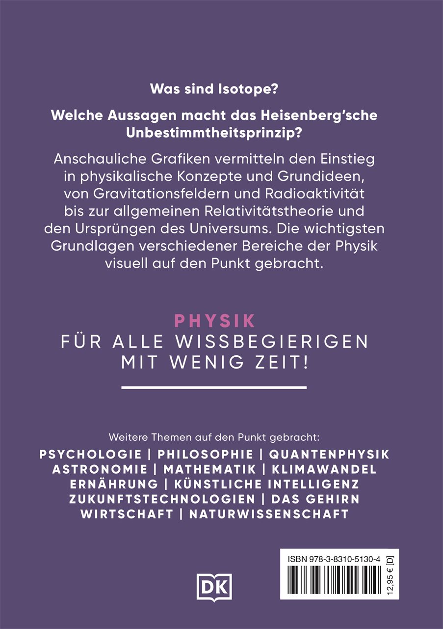| Schlagworte | Äquivalenzprinzip • Brechung und Dispersion • DK simply • Doppelsterne • Dopplereffekt • Dunkle Materie • Elektrizität • Elemente • Entstehung des Universums • Gravitationswellen • Heisenbergsche Unschärferelation • Kinetische Energie • Kosmische Hintergrundstrahlung • Lumineszenz • Magnetismus • Nachschlagewerk • Newtonsche Gesetze • Newtonsche Gesetze der Bewegung • Physik • Physikalische Grundlagen • physik buch • Physik einfach erklärt • Physik für Anfänger • physik grundlagen • Physik Grundwissen • physik themen • Quantenphysik • Quantenphysik Buch • quantenverschränkung • Quantenzahlen • Quarks • Quarks Physik • Radioaktivität • Relativitätstheorie • Schallfrequenz • Simply Physik • Sternentstehung • Thermodynamik • Ursprünge des Universums • Was ist Relativitätstheorie • Wissensbuch • wissenschaft buch • Wissen to go |