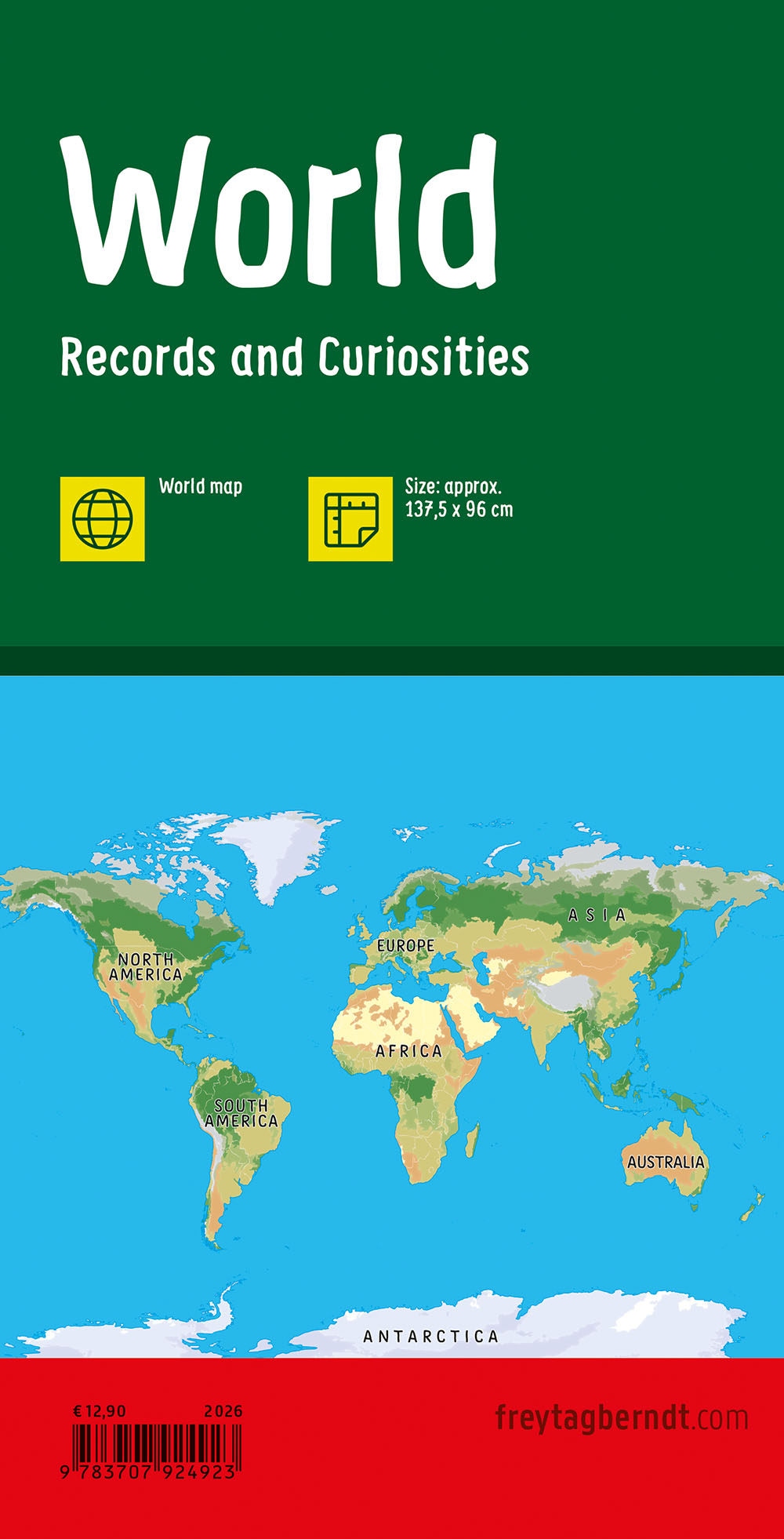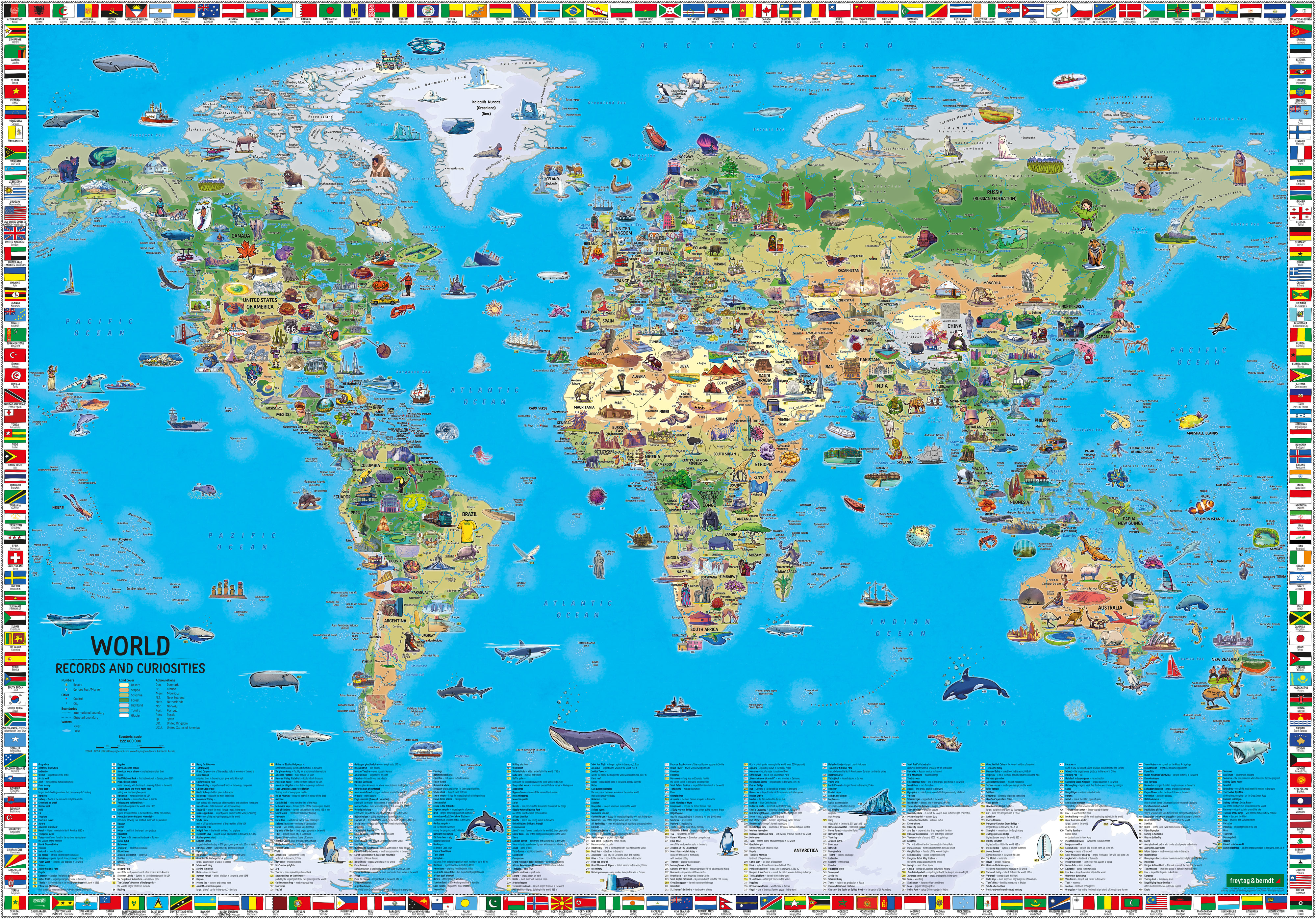 137,5 x 96 cm, World Records, colorful, Illustrated World Map for Kids