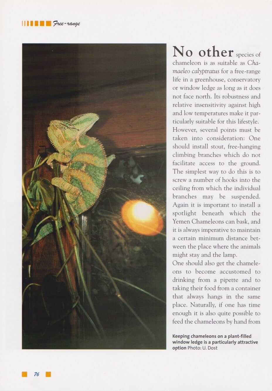 In his book the author treats all important aspects of the right grooming and breeding of the Yemen chameleon. Numerous illustrations both document and underline the extraordinary and interesting character of this species for terraristics.