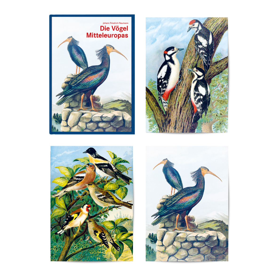 Mit drei Prints: Waldrapp, Buchfink, Rotspecht (DIN A4)
