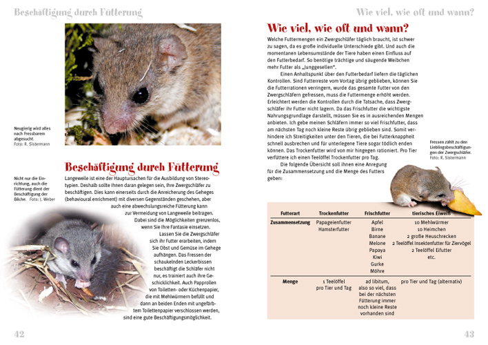 Ralf Sistermann vermehrt seit vielen Jahren Zwergschläfer. Mit diesem hervorragend bebilderten Buch schließt er eine Lücke, denn bislang war über Haltung und Vermehrung dieser Tiere kaum Literatur zu finden.