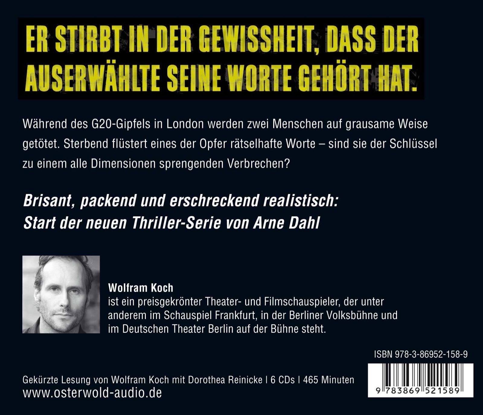 Arne Dahl ist das Pseudonym des schwedischen Romanautors Jan Arnald, Jahrgang 1963. Als Arne Dahl wurde er in den letzten Jahren mit seinen Kriminalromanen um den Stockholmer Inspektor Paul Hjelm und die Sonderermittler der A-Gruppe bekannt und gilt heute als einer der erfolgreichsten schwedischen Autoren weltweit. Im Zentrum seiner zweiten Thriller-Reihe steht das international ermittelnde Opcop-Team. Der erste Teil Gier stand monatelang auf der SPIEGEL-Bestsellerliste. Arne Dahl erhielt zahlreiche Auszeichnungen, darunter zweimal den Deutschen Krimipreis, den dänischen Krimipreis sowie den Radio Bremen Krimipreis.