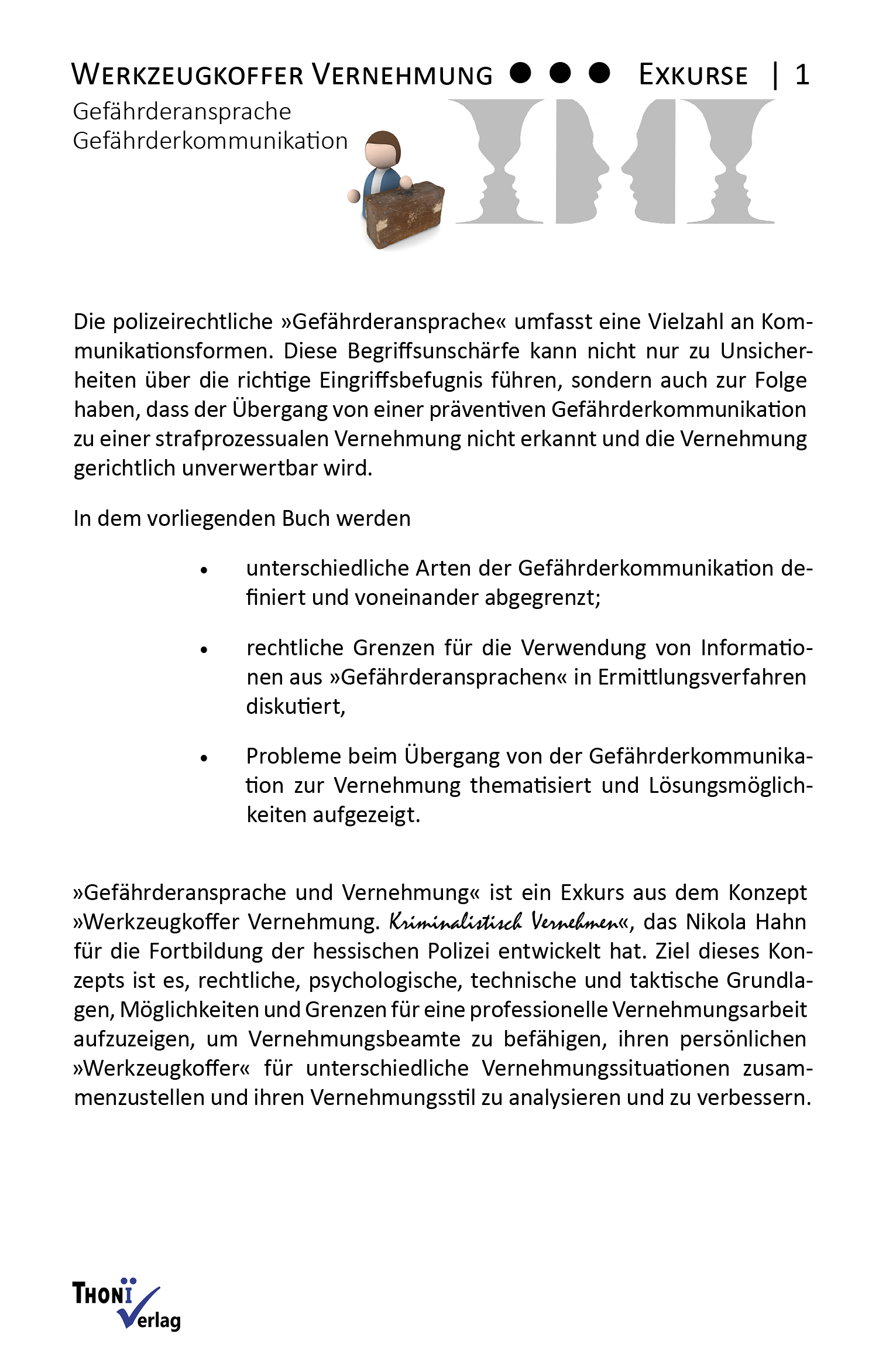 | Reihe/Serie | Werkzeugkoffer Vernehmung - Exkurse ; 1 |