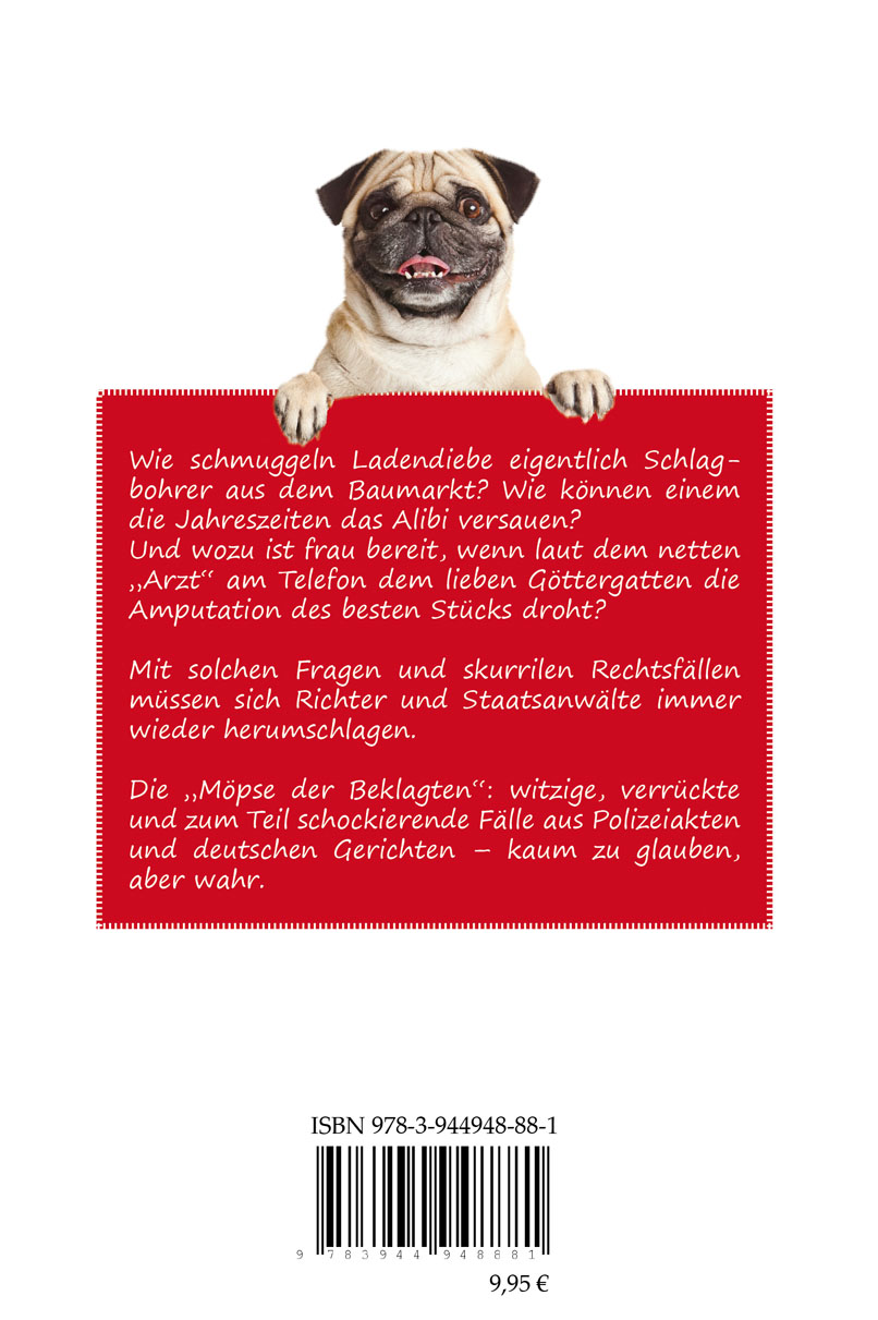 Wie schmuggeln Ladendiebe eigentlich Schlagbohrer aus dem Baumarkt? Wie können einem die Jahreszeiten das Alibi versauen?Und wozu ist frau bereit, wenn laut dem netten "Arzt" am Telefon dem lieben Göttergatten die Amputation des besten Stücks droht?Mit solchen Fragen und skurrilen Rechtsfällen müssen sich Richter und Staatsanwälte immer wieder herumschlagen.Die "Möpse der Beklagten": witzige, verrückte und zum Teil schockierende Fälle aus Polizeiakten und deutschen Gerichten - kaum zu glauben, aber wahr.