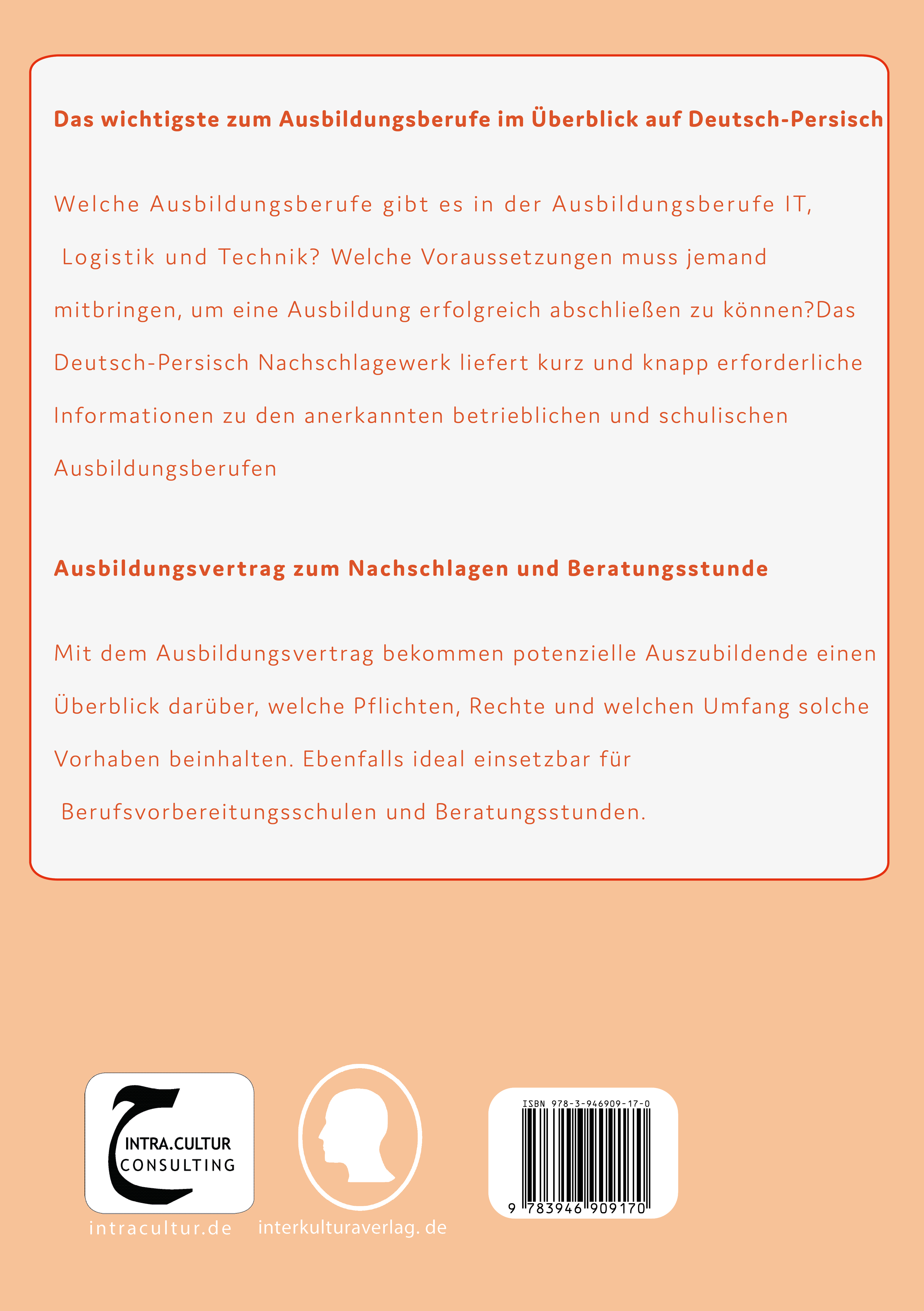 - Mit Berufsausbildungsvertrag- Mit Übersicht der 120 wichtigsten Fähigkeiten und Fertigkeiten für die Arbeitswelt- Mit 1300 Fachbegriffe aus der Ausbildung-, Berufs- und Arbeitswelt- Deutsch-Persische Ratgeber, Orientierungshilfe für minderjährige Flüchtlinge, Schutzsuchende und Berufsschüler- Wichtige Informationen über anerkannte betriebliche und schulische Ausbildungsberufe- Ideal für SchülerInnen mit schwachen Deutschkenntnissen- Für alle Integrationskurse und das Selbststudium geeignetDas Wichtigste zu Ausbildungsberufen im Überblick auf Deutsch-Persisch:Welche Ausbildungsberufe gibt es in der IT, Logistik und Technik? Welche Voraussetzungen muss jemand mitbringen, um eine Ausbildung erfolgreich abschließen zu können?Das Deutsch-Persisch Nachschlagwerk liefert kurz und knapp erforderliche Informationen zu den anerkannten betrieblichen und schulischen Ausbildungsberufen.Fach-, Methoden- und Sozialkompetenzen auf den Punkt bringen:Um den Einstieg in die Arbeitswelt zu erleichtern, werden die notwendigen Fähigkeiten und Kompetenzen anhand von Beispielen jeweils erklärt.Wichtige Vokabeln und Fachbegriffe aus der Berufswelt:Um in der Ausbildungsphase zurechtzukommen, beinhaltet das Buch darüber hinaus zusätzlich 1000 Fachbegriffe aus der Berufswelt. Es bietet eine gelungene Kombination aus Praxisnähe und Aktualität der wichtigsten Begrifflichkeiten.Ausbildungsvertrag zum Nachschlagen und Unterstützung in der Beratungsstunde:Mit dem Ausbildungsvertrag bekommen potenzielle Auszubildende einen Überblick darüber, welche Pflichten und Rechte sie haben und was eine Ausbildung beinhaltet. Ebenfalls ideal einsetzbar für Angebote der Berufsvorbereitung und in Beratungsstunden.