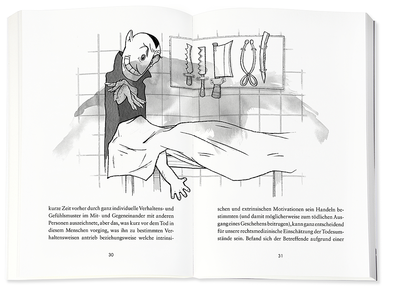 "Die im Grunde ziemlich grausige Materie wird durch Zeichnungen von Christoph Kellner illustriert, so dass die Lehrstunde in Sachen Rechtsmedizin nicht nur informativ, sondern auch unterhaltsam geraten ist."