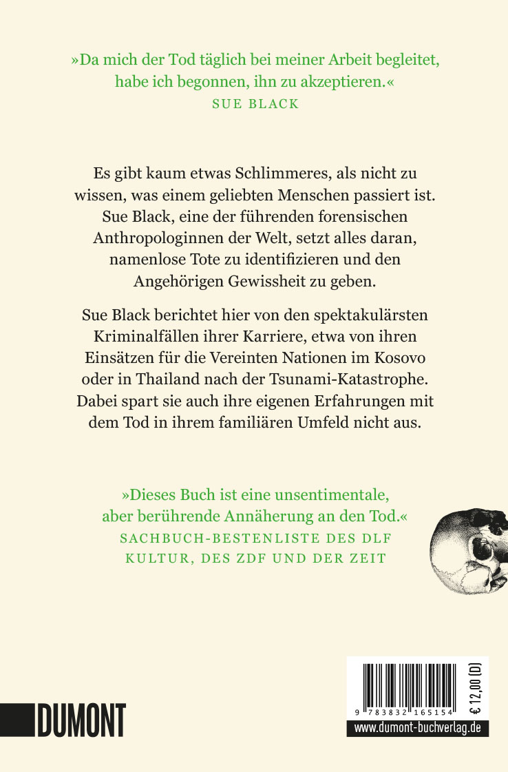 »Egal ob Sue Black die sieben Stadien der Verwesung schildert oder verschiedene Arten der Zerstückelung erläutert. Sie triftet dabei nie ab ins Voyeuristische und bewahrt stets die Würde der Toten – in ihrem Buch und in ihrer Arbeit.«