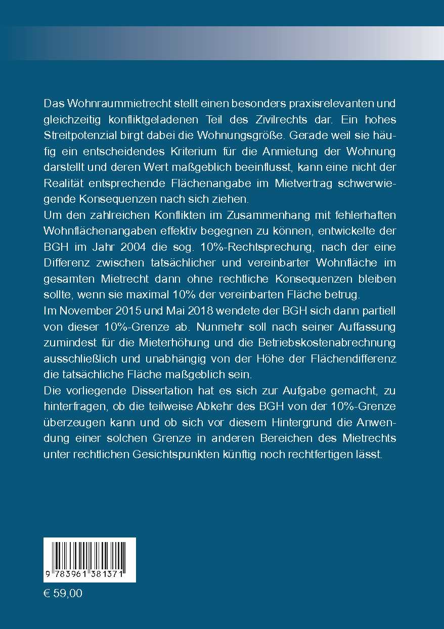 Die vorliegende Dissertation hat es sich zur Aufgabe gemacht, zu hinterfragen, ob die teilweise Abkehr des BGH von der 10%-Grenze überzeugen kann und ob sich vor diesem Hintergrund die Anwendung einer solchen Grenze in anderen Bereichen des Mietrechts unter rechtlichen Gesichtspunkten künftig noch rechtfertigen lässt.