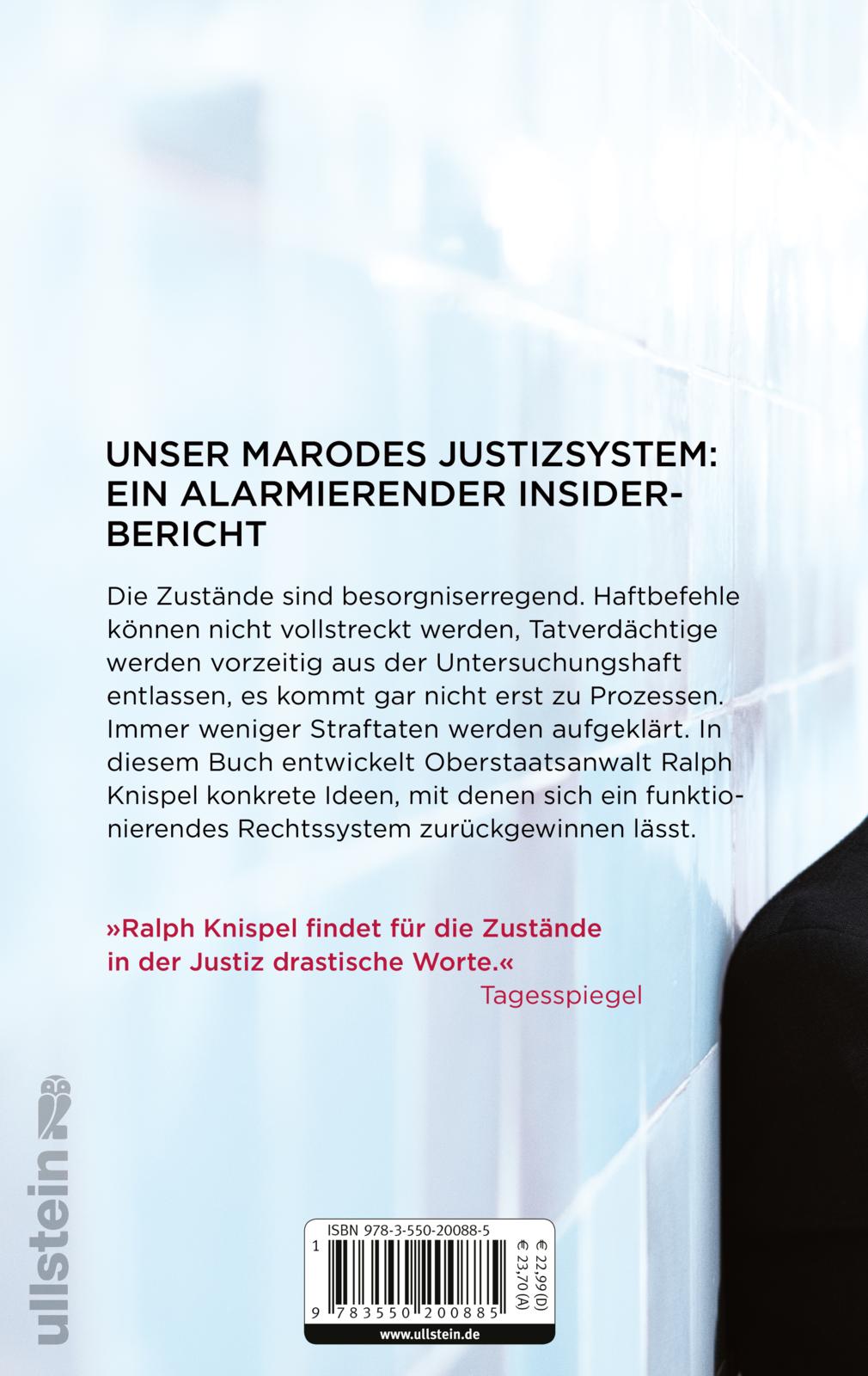 Die Zustände sind besorgniserregend. Seit Jahren sind Polizei und Justiz dramatisch unterbesetzt. Tatverdächtige werden aus der Untersuchungshaft entlassen. Der Anteil aufgeklärter Straftaten geht zurück, Haftbefehle werden nicht vollstreckt. Die Folge: Immer mehr Menschen verlieren das Vertrauen in unser Rechtssystem. Ralph Knispel, der seit fast drei Jahrzehnten bei der Berliner Staatsanwaltschaft tätig ist, schlägt Alarm. Er berichtet von den eklatanten Fehlentwicklungen bei der Strafverfolgung, aber zeigt auch, dass es durchaus Lösungen gibt, damit der Rechtsstaat seine Pflichten gegenüber den Bürgern wieder erfüllen kann.