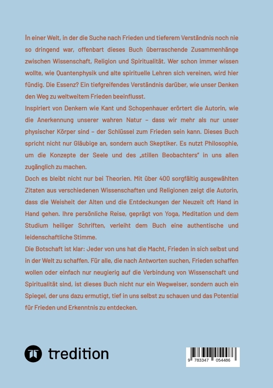 Für alle, die nach Antworten suchen, Frieden schaffen wollen oder einfach nur neugierig auf die Verbindung von Wissenschaft und Spiritualität sind, ist dieses Buch ein Muss. Es ist nicht nur ein Wegweiser, sondern auch ein Spiegel, der uns dazu ermutigt, tief in uns selbst zu schauen und das Potential für Frieden und Erkenntnis zu entdecken, das in uns allen schlummert.