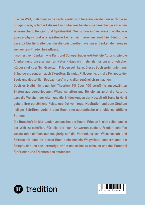 | Schlagworte | Akasha-Chronik oder Nullpunktfeld • alte Weisheiten • Authentische Einsichten • bewusste Entscheidungen • Brücke zwischen Alt und Neu • Energie und Bewusstsein • Förderung des Weltfriedens • Frieden als Natur der Seele • FriedenalsNaturderSeele • Friedensbildung • Innerer Frieden • interreligiöser Dialog • Lebensphilosophie • Menschenrechte und Frieden • Menschliche Natur • Modernes Verständnis • Paramahansa Yogananda • Persönliche Entwicklung • Philosophie des Bewusstseins • Philosophie zur Entstehung des Denkens • PhilosophiezurEntstehungdesDenkens • Quantenphilosophie • Quantenphilosophie und Spriritualität • QuantenphilosophieundSpriritualität • Religionen im Vergleich • ReligionenimVergleich • Religion und Frieden • Seele und Wissenschaft • Selbstverwirklichung • Spiritualität und Wissenschaft • stiller Beobachter • Vielseitige Quellen • Weltfrieden • yoga und meditation |