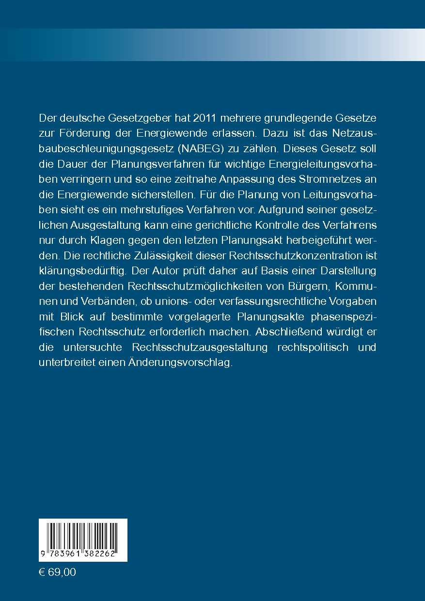 Der deutsche Gesetzgeber hat 2011 mehrere grundlegende Gesetze zur Förderung der Energiewende erlassen. Dazu ist das Netzausbaubeschleunigungsgesetz (NABEG) zu zählen. Dieses Gesetz soll die Dauer der Planungsverfahren für wichtige Energieleitungsvorhaben verringern und so eine zeitnahe Anpassung des Stromnetzes an die Energiewende sicherstellen. Für die Planung von Leitungsvorhaben sieht es ein mehrstufiges Verfahren vor. Aufgrund seiner gesetzlichen Ausgestaltung kann eine gerichtliche Kontrolle des Verfahrens nur durch Klagen gegen den letzten Planungsakt herbeigeführt werden. Die rechtliche Zulässigkeit dieser Rechtsschutzkonzentration ist klärungsbedürftig. Der Autor prüft daher auf Basis einer Darstellung der bestehenden Rechtsschutzmöglichkeiten von Bürgern, Kommunen und Verbänden, ob unions- oder verfassungsrechtliche Vorgaben mit Blick auf bestimmte vorgelagerte Planungsakte phasenspezifischen Rechtsschutz erforderlich machen. Abschließend würdigt er die untersuchte Rechtsschutzausgestaltung rechtspolitisch und unterbreitet einen Änderungsvorschlag.