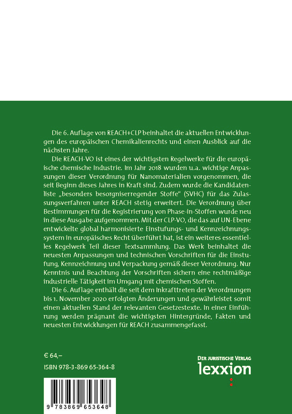 Die 6. Auflage von REACH+CLP beinhaltet die aktuellen Entwicklungen
