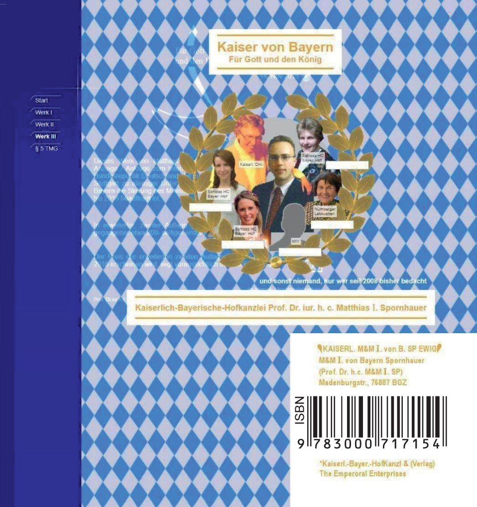 | Schlagworte | Fuer Gott und den Koenig • FuerGottunddenKoenig/ Kaiser&in • Für Gott und den König • FÜR GOTT UND DEN KÖNIG/ KAISER&IN • Für Gott und den König/ Kaiser&in M&M I. von B. SP • Kaiserin Margarita I. von B. SP • Kaiserin von Bayern • Kaiserlich- Bayerische- HofKanzlei Prof. Dr. iur. h.c. Matthias I. Spornhauer HofKanzl & (Verlag) • Kaiserlich- Bayerische- HofKanzlei Prof. Dr. iur. h.c. Matthias I. Spornhauer RechtsanwaltsKanzlei • Kaiserlich- Bayerische- HofKanzlei Prof. Dr. sc.mus. h.c. / Kaiserin Margarita I. Spornhauer Prof. Dr. iur. h.c. / Kaiser Matthias I. Spornhauer HofKanzl & (Verlag) • KAISERL. M&M I. VON B. SP • KAISER MATTHIAS I. VON B. SP • Kaiser von Bayern • Margarita • Matthias • Prof. Dr. h.c. M&M I. Spornhauer • ROM Pd 3.5.2020/21 • Spornhauer • Spornhauer, Margarita • Spornhauer, Matthias • The Emperoral Enterprises |