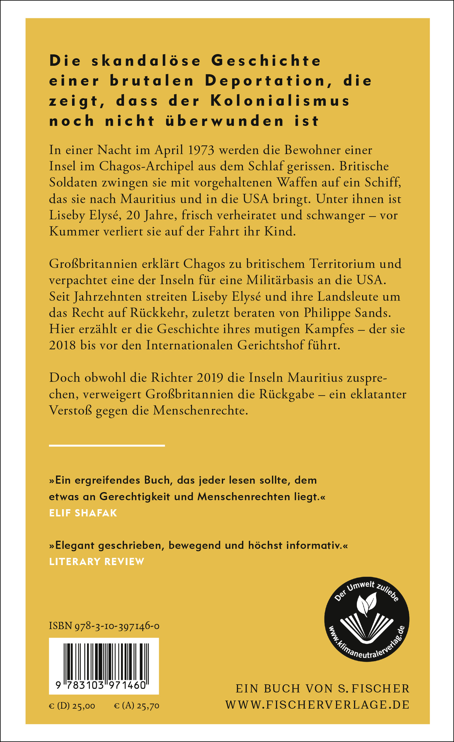 »Wir waren wie Tiere oder Sklaven auf diesem Schiff. Einige starben vor Kummer. (...) Es bricht einem das Herz.« Mit diesen Worten beschrieb Liseby Elysé 2018 vor dem Internationalen Gerichtshof ihre Deportation. Seit Jahrzehnten streiten sie und ihre Landsleute um das Recht auf Rückkehr, seit 2018 werden sie dabei von Philippe Sands beraten.