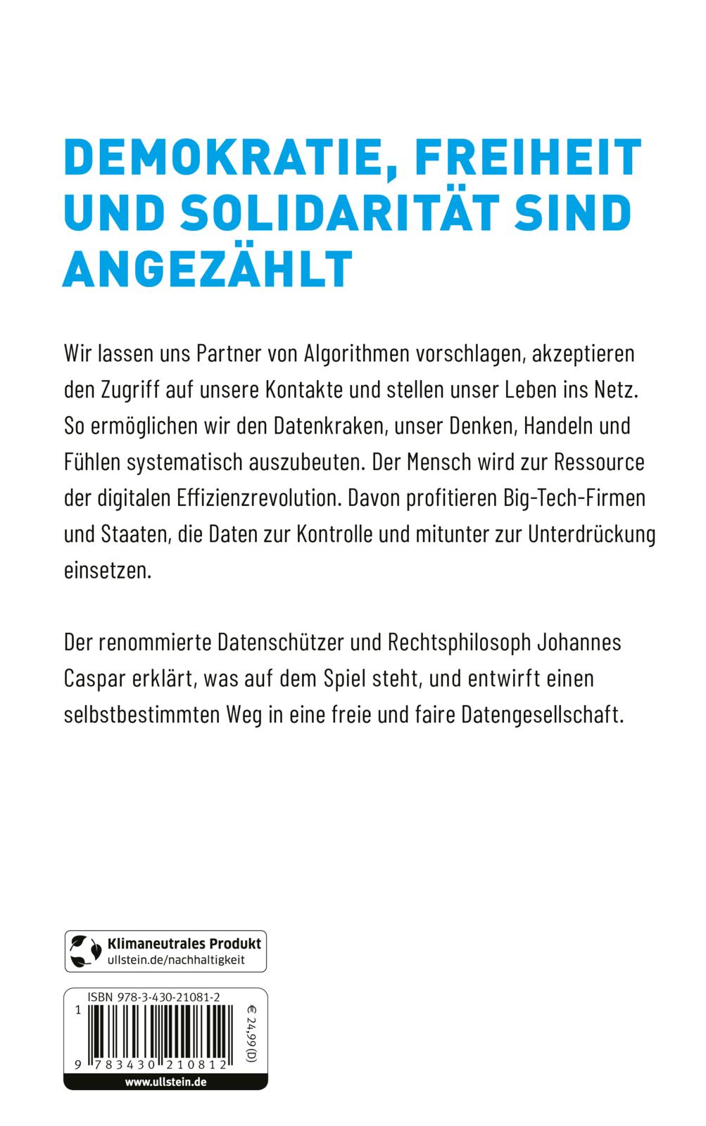 Johannes Caspar zeigt, dass Demokratie, Freiheit und Solidarität auf der Kippe stehen. Doch wir können etwas dagegen tun. Es gilt, Künstliche Intelligenz menschengerecht einzusetzen sowie soziale Plattformen und Dienste grundlegend zu demokratisieren. Informationelle Integrität für die Menschen und digitale Souveränität für demokratische Staaten müssen zentrale Werte werden. Der Autor diskutiert aktuelle EU-Regulierungsansätze zur Digitalisierung. Darüber hinaus entwirft er Wege, wie wir die Datenherrschaft künftig abstreifen können.