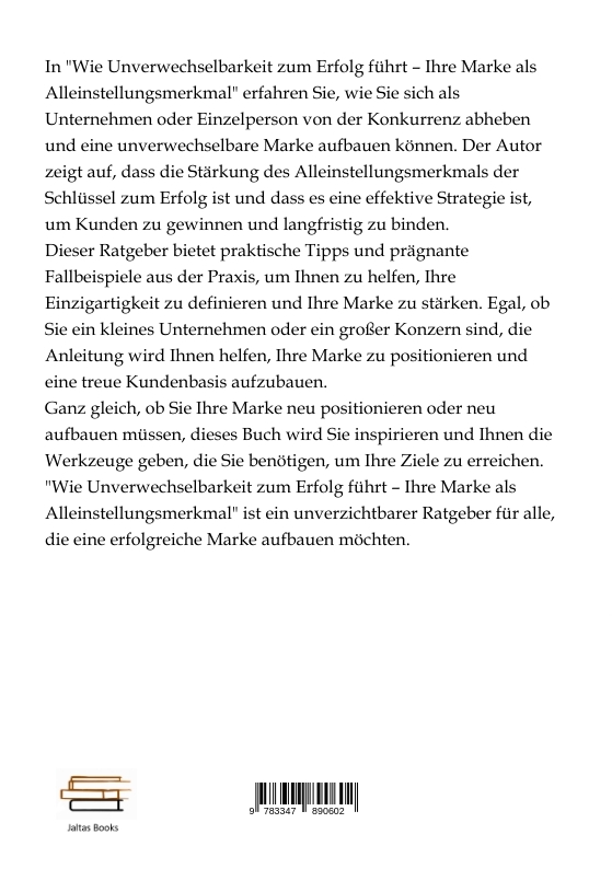 In "Wie Unverwechselbarkeit zum Erfolg führt - Ihre Marke als Alleinstellungsmerkmal" erfahren Sie, wie Sie sich als Unternehmen oder Einzelperson von der Konkurrenz abheben und eine unverwechselbare Marke aufbauen können. Der Autor zeigt auf, dass die Stärkung des Alleinstellungsmerkmals der Schlüssel zum Erfolg ist und dass es eine effektive Strategie ist, um Kunden zu gewinnen und langfristig zu binden.Dieser Ratgeber bietet praktische Tipps und prägnante Fallbeispiele aus der Praxis, um Ihnen zu helfen, Ihre Einzigartigkeit zu definieren und Ihre Marke zu stärken. Egal, ob Sie ein kleines Unternehmen oder ein großer Konzern sind, die Anleitung wird Ihnen helfen, Ihre Marke zu positionieren und eine treue Kundenbasis aufzubauen.Ganz gleich, ob Sie Ihre Marke neu positionieren oder neu aufbauen müssen, dieses Buch wird Sie inspirieren und Ihnen die Werkzeuge geben, die Sie benötigen, um Ihre Ziele zu erreichen. "Wie Unverwechselbarkeit zum Erfolg führt - Ihre Marke als Alleinstellungsmerkmal" ist ein unverzichtbarer Ratgeber für alle, die eine erfolgreiche Marke aufbauen möchten.