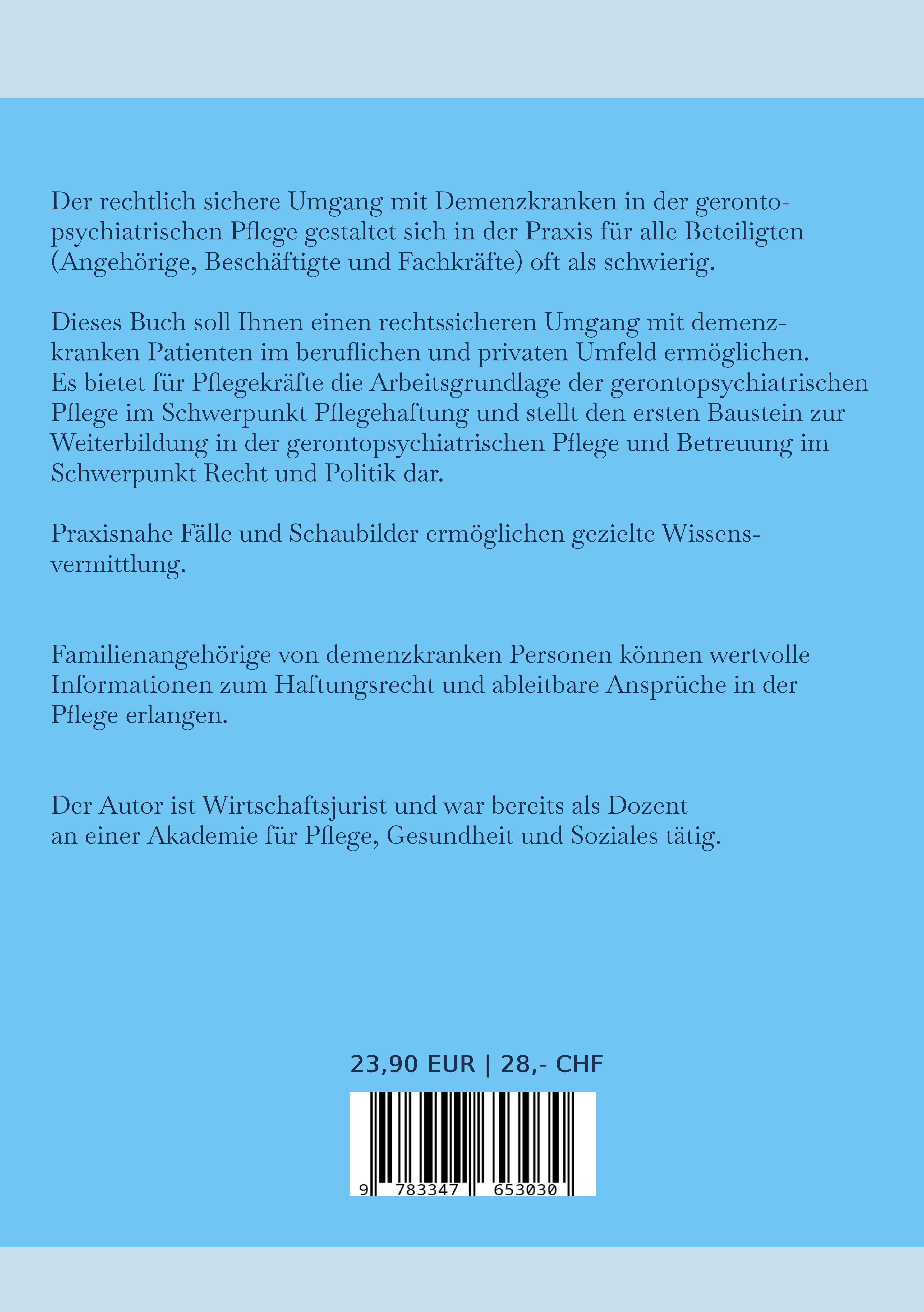 | Schlagworte | Altenpfleger • Anordnung • Arbeitsrecht • Arzneimitteltherapiesicherheit • AVPfleWoqG • Datenschutz • Datenschutz in Pflegeeinrichtungen • Durchsuchung- und Beschlagnahme • Einzelfalldokumentation • Ermittlungen in der Pflege • Fotodokumentation • Gerontopsychiatrie • Haftung bei Pflegefehlern • Haftung der Pflegedienstleitung • Haftung der Schichtleitung • Haftung des Arbeitgebers in der Pflege • Haftung des Arbeitnehmers bei Patienten • Haftung des Pflegers • Haftung für Pfleger • Haftung im Arbeitsverhältnis • Hilfe bei Demenz • Laienpflege • Landesrahmenverträge nach 75 SGB XI • Landesrahmenverträge nach § 75 SGB XI • Medikamente • Medikationsprozess • mitwirkende Personen • Personenbezogene Daten im Gesundheitswesen • Pflegeausbildung • Pflegedokumentation • rechtliche Grundlagen der gerontopsychiatrischen Pflege • Schweigepflicht • Sozialdatenschutz |
