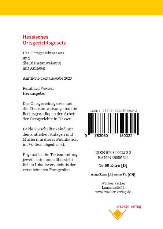 | Reihe/Serie | Hessisches Ortsgerichtsgesetz |