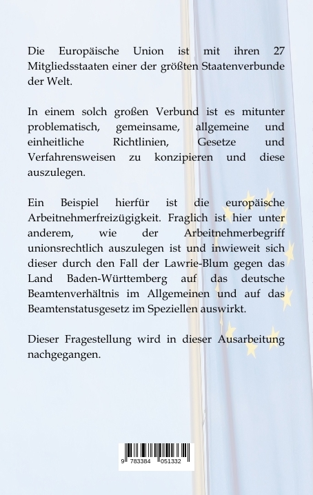 Die Europäische Union ist mit ihren 27 Mitgliedsstaaten einer der größten Staatenverbunde der Welt.In einem solch großen Verbund ist es mitunter problematisch, gemeinsame, allgemeine und einheitliche Richtlinien, Gesetze und Verfahrensweisen zu konzipieren und diese auszulegen. Ein Beispiel hierfür ist die europäische Arbeitnehmerfreizügigkeit. Fraglich ist hier unter anderem, wie der Arbeitnehmerbegriff unionsrechtlich auszulegen ist und inwieweit sich dieser durch den Fall der Lawrie-Blum gegen das Land Baden-Württemberg auf das deutsche Beamtenverhältnis im Allgemeinen und auf das Beamtenstatusgesetz im Speziellen auswirkt.Dieser Fragestellung wird in dieser Ausarbeitung nachgegangen.