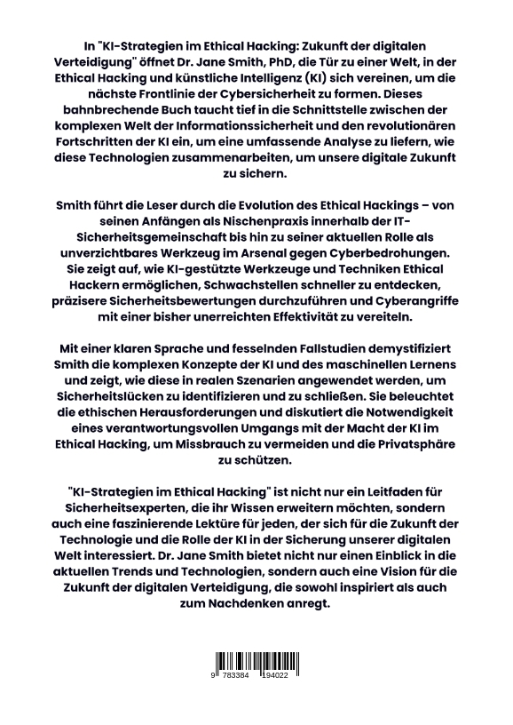 In "KI-Strategien im Ethical Hacking: Zukunft der digitalen Verteidigung" öffnet Dr. Jane Smith, PhD, die Tür zu einer Welt, in der Ethical Hacking und künstliche Intelligenz (KI) sich vereinen, um die nächste Frontlinie der Cybersicherheit zu formen. Dieses bahnbrechende Buch taucht tief in die Schnittstelle zwischen der komplexen Welt der Informationssicherheit und den revolutionären Fortschritten der KI ein, um eine umfassende Analyse zu liefern, wie diese Technologien zusammenarbeiten, um unsere digitale Zukunft zu sichern.Smith führt die Leser durch die Evolution des Ethical Hackings - von seinen Anfängen als Nischenpraxis innerhalb der IT-Sicherheitsgemeinschaft bis hin zu seiner aktuellen Rolle als unverzichtbares Werkzeug im Arsenal gegen Cyberbedrohungen. Sie zeigt auf, wie KI-gestützte Werkzeuge und Techniken Ethical Hackern ermöglichen, Schwachstellen schneller zu entdecken, präzisere Sicherheitsbewertungen durchzuführen und Cyberangriffe mit einer bisher unerreichten Effektivität zu vereiteln.Mit einer klaren Sprache und fesselnden Fallstudien demystifiziert Smith die komplexen Konzepte der KI und des maschinellen Lernens und zeigt, wie diese in realen Szenarien angewendet werden, um Sicherheitslücken zu identifizieren und zu schließen. Sie beleuchtet die ethischen Herausforderungen und diskutiert die Notwendigkeit eines verantwortungsvollen Umgangs mit der Macht der KI im Ethical Hacking, um Missbrauch zu vermeiden und die Privatsphäre zu schützen."KI-Strategien im Ethical Hacking" ist nicht nur ein Leitfaden für Sicherheitsexperten, die ihr Wissen erweitern möchten, sondern auch eine faszinierende Lektüre für jeden, der sich für die Zukunft der Technologie und die Rolle der KI in der Sicherung unserer digitalen Welt interessiert. Dr. Jane Smith bietet nicht nur einen Einblick in die aktuellen Trends und Technologien, sondern auch eine Vision für die Zukunft der digitalen Verteidigung, die sowohl inspiriert als auch zum Nachdenken anregt.Smith führt die Leser durch die Evolution des Ethical Hackings - von seinen Anfängen als Nischenpraxis innerhalb der IT-Sicherheitsgemeinschaft bis hin zu seiner aktuellen Rolle als unverzichtbares Werkzeug im Arsenal gegen Cyberbedrohungen. Sie zeigt auf, wie KI-gestützte Werkzeuge und Techniken Ethical Hackern ermöglichen, Schwachstellen schneller zu entdecken, präzisere Sicherheitsbewertungen durchzuführen und Cyberangriffe mit einer bisher unerreichten Effektivität zu vereiteln.Mit einer klaren Sprache und fesselnden Fallstudien demystifiziert Smith die komplexen Konzepte der KI und des maschinellen Lernens und zeigt, wie diese in realen Szenarien angewendet werden, um Sicherheitslücken zu identifizieren und zu schließen. Sie beleuchtet die ethischen Herausforderungen und diskutiert die Notwendigkeit eines verantwortungsvollen Umgangs mit der Macht der KI im Ethical Hacking, um Missbrauch zu vermeiden und die Privatsphäre zu schützen."KI-Strategien im Ethical Hacking" ist nicht nur ein Leitfaden für Sicherheitsexperten, die ihr Wissen erweitern möchten, sondern auch eine faszinierende Lektüre für jeden, der sich für die Zukunft der Technologie und die Rolle der KI in der Sicherung unserer digitalen Welt interessiert. Dr. Jane Smith bietet nicht nur einen Einblick in die aktuellen Trends und Technologien, sondern auch eine Vision für die Zukunft der digitalen Verteidigung, die sowohl inspiriert als auch zum Nachdenken anregt.