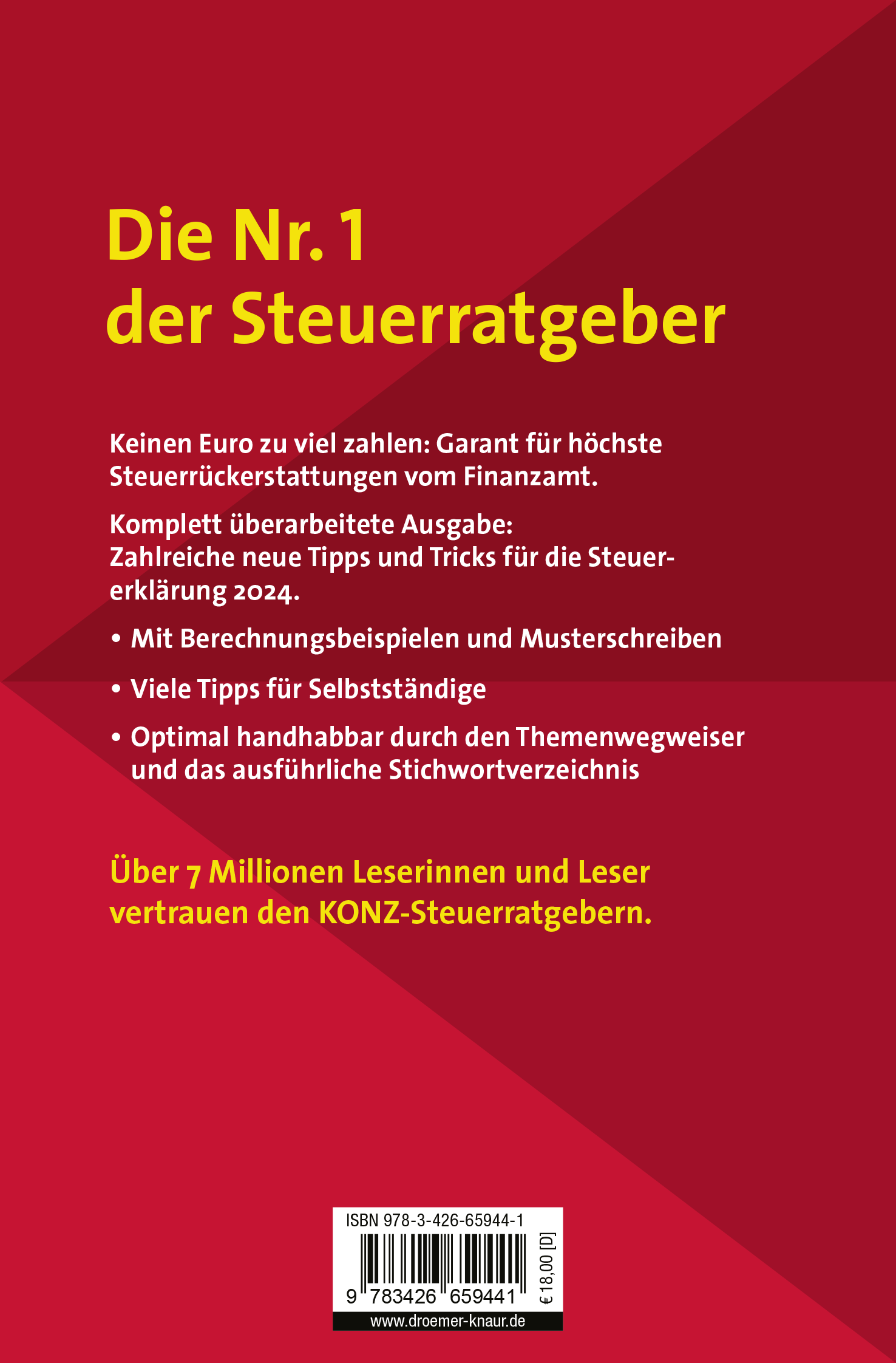 Die komplett überarbeitete Ausgabe enthält zahlreiche neue Tipps und Tricks für die Steuererklärung 2024. Mit dem überarbeiteten Konz erhalten Sie das Steuerwissen, das Ihnen mehr Geld bei der Steuererklärung einbringt, ganz nach dem Motto: Mehr Wissen. Mehr Geld. Konz.