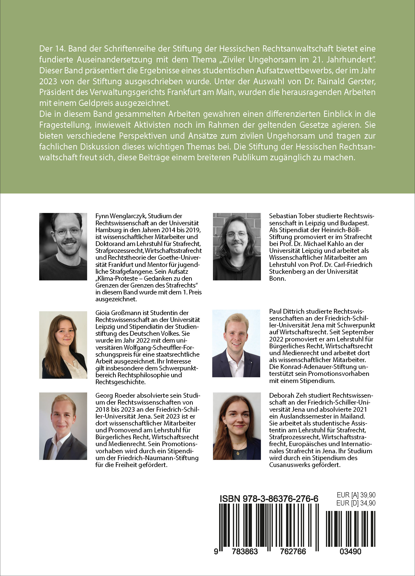 Der 14. Band der Schriftenreihe der Stiftung der Hessischen Rechtsanwaltschaft bietet eine fundierte Auseinandersetzung mit dem Thema „Ziviler Ungehorsam im 21. Jahrhundert”. Dieser Band präsentiert die Ergebnisse eines studentischen Aufsatzwettbewerbs, der im Jahr 2023 von der Stiftung ausgeschrieben wurde. Unter der Auswahl von Dr. Rainald Gerster, Präsident des Verwaltungsgerichts Frankfurt am Main, wurden die herausragenden Arbeiten mit einem Geldpreis ausgezeichnet. Die in diesem Band gesammelten Arbeiten gewähren einen differenzierten Einblick in die Fragestellung, inwieweit Aktivisten noch im Rahmen der geltenden Gesetze agieren. Sie bieten verschiedene Perspektiven und Ansätze zum zivilen Ungehorsam und tragen zur fachlichen Diskussion dieses wichtigen Themas bei. Die Stiftung der Hessischen Rechtsanwaltschaft freut sich, diese Beiträge einem breiteren Publikum zugänglich zu machen.