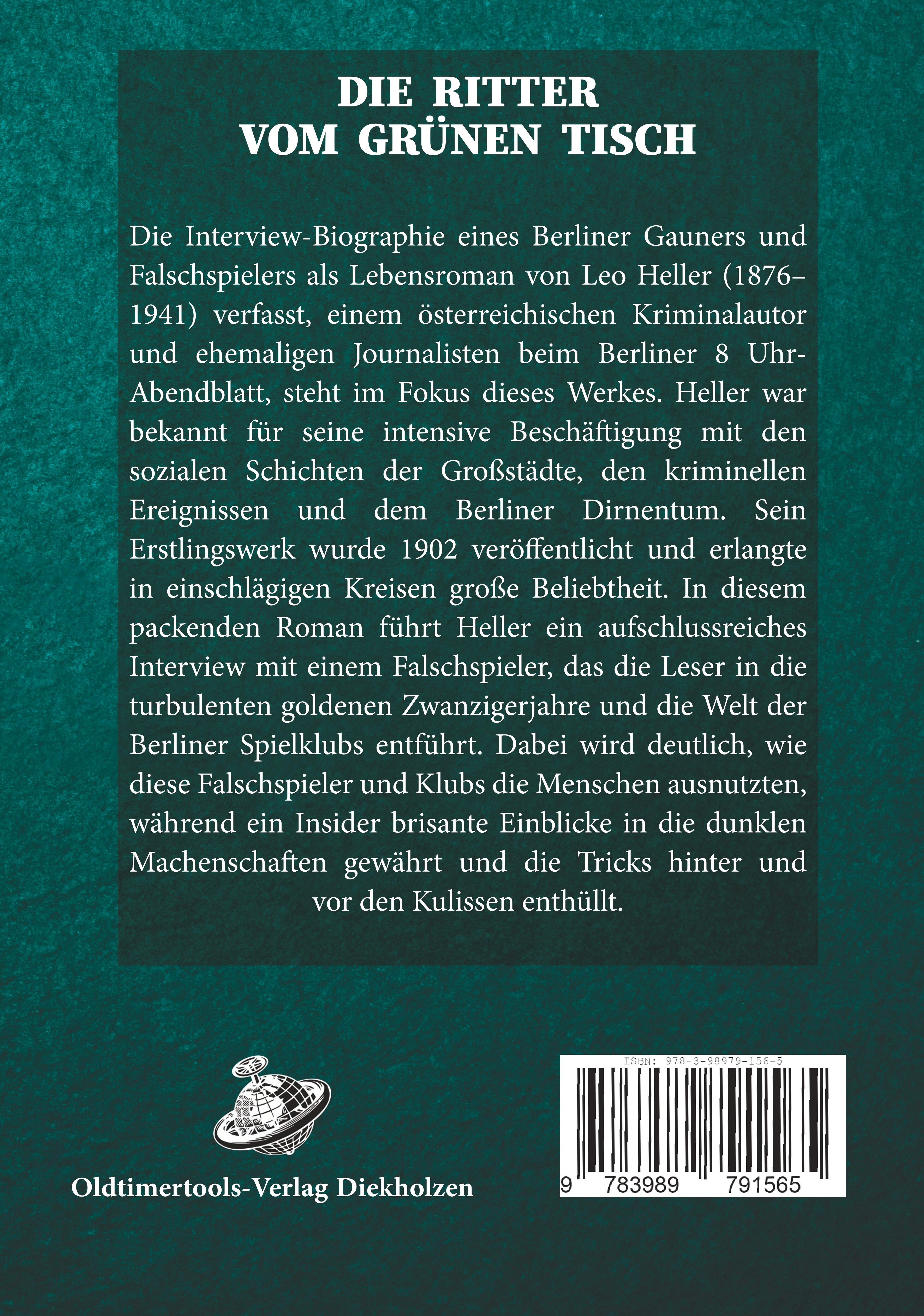 Die Interview-Biographie eines Berliner Gauners undFalschspielers als Lebensroman Die Biografie einesBerliner Gauners und Falschspielers, als Lebensroman vonLeo Heller (1876-1941) verfasst, einem österreichischenKriminalautor und ehemaligen Journalisten beimBerliner 8 Uhr-Abendblatt, steht im Fokus dieses Werkes.Heller war bekannt für seine intensive Beschäftigung mitden sozialen Schichten der Großstädte, den kriminellenEreignissen und dem Berliner Dirnentum. SeinErstlingswerk wurde 1902 veröffentlicht und erlangtein einschlägigen Kreisen große Beliebtheit. In diesempackenden Roman führt Heller ein aufschlussreichesInterview mit einem Falschspieler, das die Leser in dieturbulenten goldenen Zwanzigerjahre und die Welt derBerliner Spielklubs entführt. Dabei wird deutlich, wiediese Falschspieler und Klubs die Menschen ausnutzten,während ein Insider brisante Einblicke in die dunklenMachenschaften gewährt und die Tricks hinter und vorden Kulissen enthüllt.