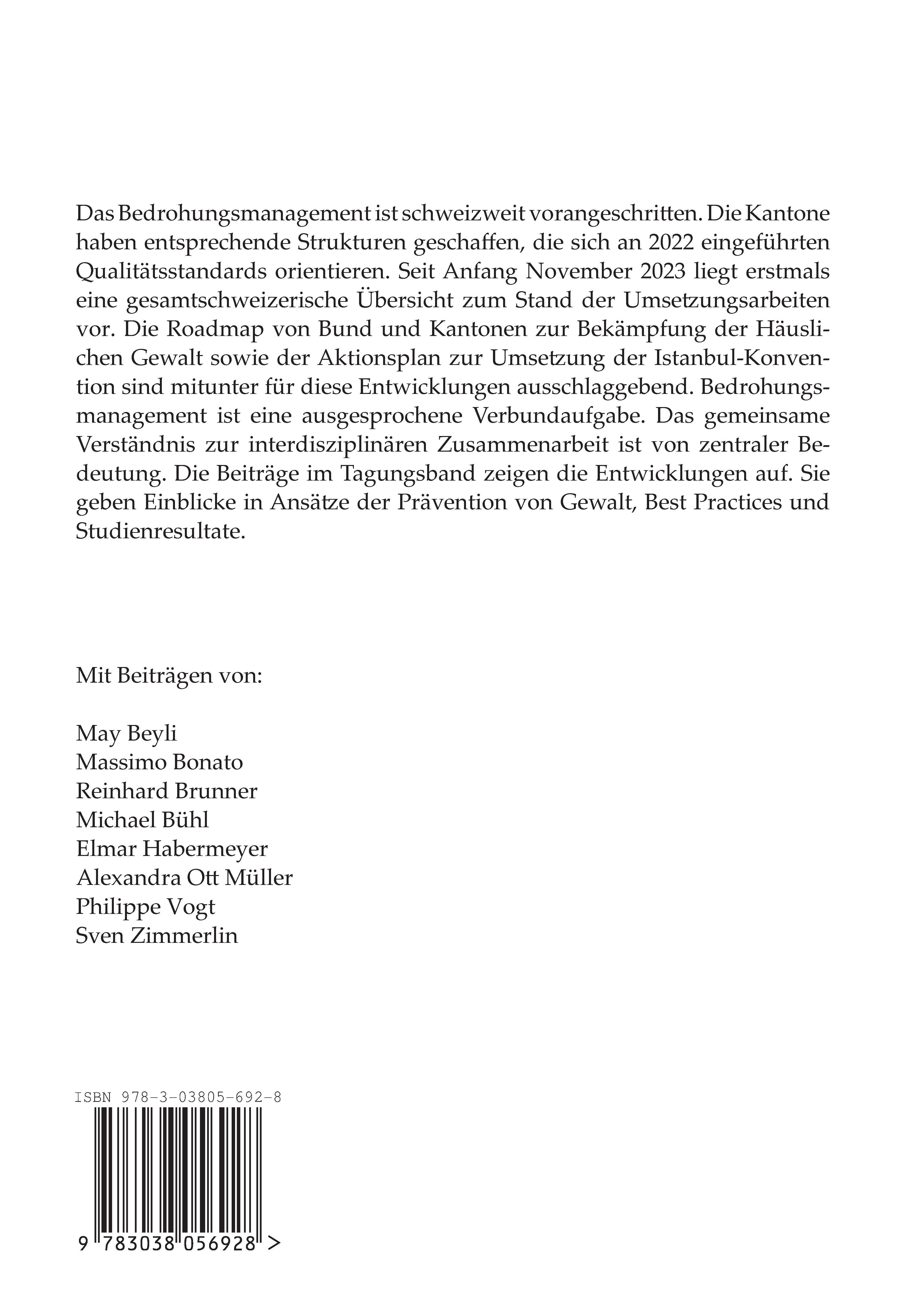 Das Bedrohungsmanagement ist schweizweit vorangeschritten. Die Kantone haben entsprechende Strukturen geschaffen, die sich an 2022 eingeführten Qualitätsstandards orientieren. Seit Anfang November 2023 liegt erstmals eine gesamtschweizerische Übersicht zum Stand der Umsetzungsarbeiten vor. Die Roadmap von Bund und Kantonen zur Bekämpfung der Häuslichen Gewalt sowie der Aktionsplan zur Umsetzung der Istanbul-Konvention sind mitunter für diese Entwicklungen ausschlaggebend. Bedrohungsmanagement ist eine ausgesprochene Verbundaufgabe. Das gemeinsame Verständnis zur interdisziplinären Zusammenarbeit ist von zentraler Bedeutung. Die Beiträge im Tagungsband zeigen die Entwicklungen auf. Sie geben Einblicke in Ansätze der Prävention von Gewalt, Best Practices und Studienresultate.