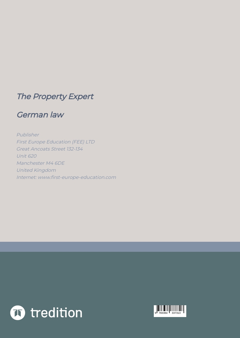 The Property Expert Part 1, German law - including three sample reports.- Units 16 Number of pages 255- Self-Study including control questions and answers.You can find a detailed reading sample with table of contents here: https://drive.google.com/file/d/1hyOwKguB4iNLNgmJg_3r9OWNvPh11-CA/view?usp=drive_link