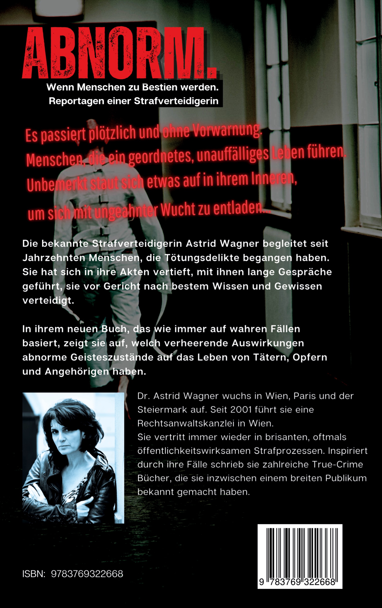 Die bekannte Strafverteidigerin Astrid Wagner begleitet seit Jahrzehnten Menschen, die Tötungsdelikte begangen haben. Sie hat sich in ihre Akten vertieft, mit ihnen lange Gespräche geführt, sie vor Gericht nach bestem Wissen und Gewissen verteidigt. In ihrem neuen Buch, das wie immer auf wahren Fällen basiert, zeigt sie auf, welch verheerende Auswirkungen abnorme Geisteszustände auf das Leben von Tätern, Opfern und Angehörigen haben.