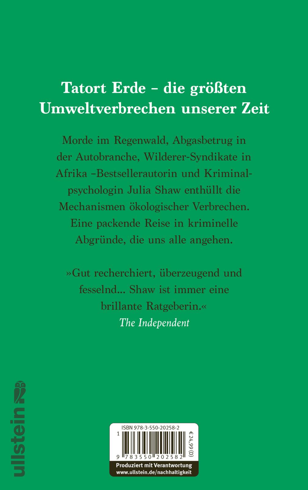 Morde im Regenwald, Abgasbetrug in der Autobranche, Wilderer-Syndikate in Afrika - Bestsellerautorin und Kriminalpsychologin Julia Shaw enthüllt die Mechanismen ökologischer Verbrechen. Eine fesselnde Reise in kriminelle Abgründe, die uns alle angehen.