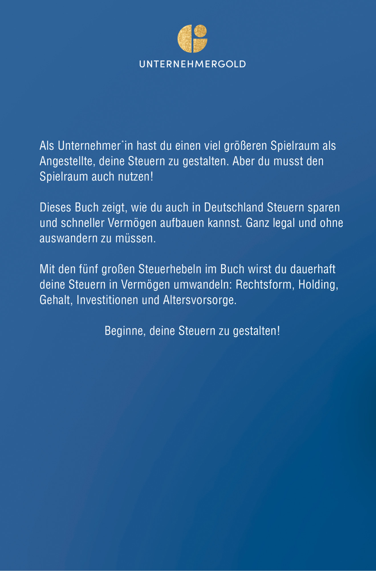 Wenn du schon erfolgreich bist und gutes Geld verdienst, ist es an der Zeit, deine Steuerstruktur deinem Erfolg anzupassen. Wenn du noch am Anfang stehst, dann hilft dir dieses Buch, gleich zu Beginn die richtigen Weichen zu stellen. Das Buch ist einer unternehmerischen Perspektive geschrieben: klar, relevant und verständlich.