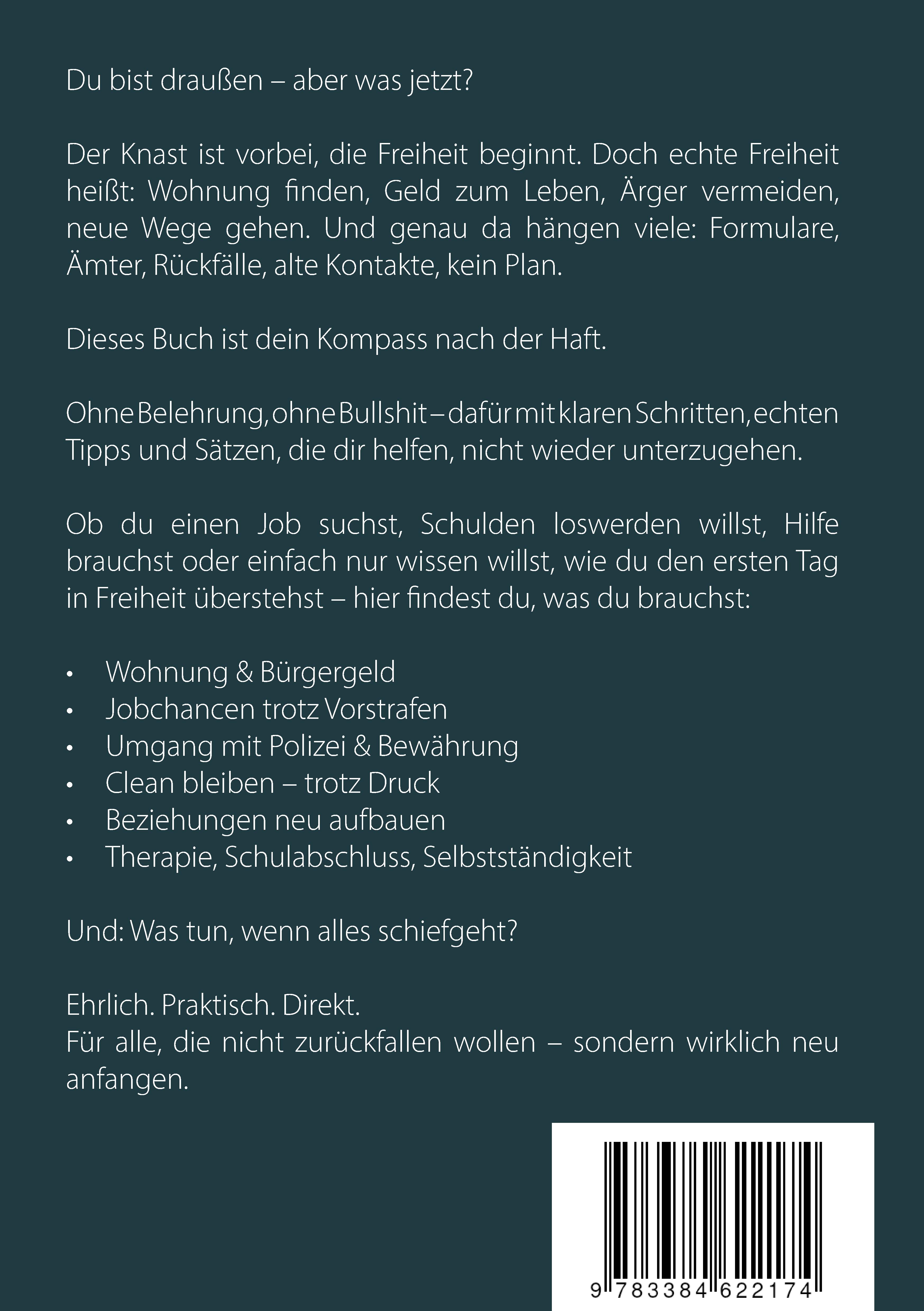 | Schlagworte | Ex-Häftling • Gefängnis • Haftentlassung • Knast • Knastbuch • Neuanfang • Resozialisierung • Vorstrafe • Wiedereinstieg |