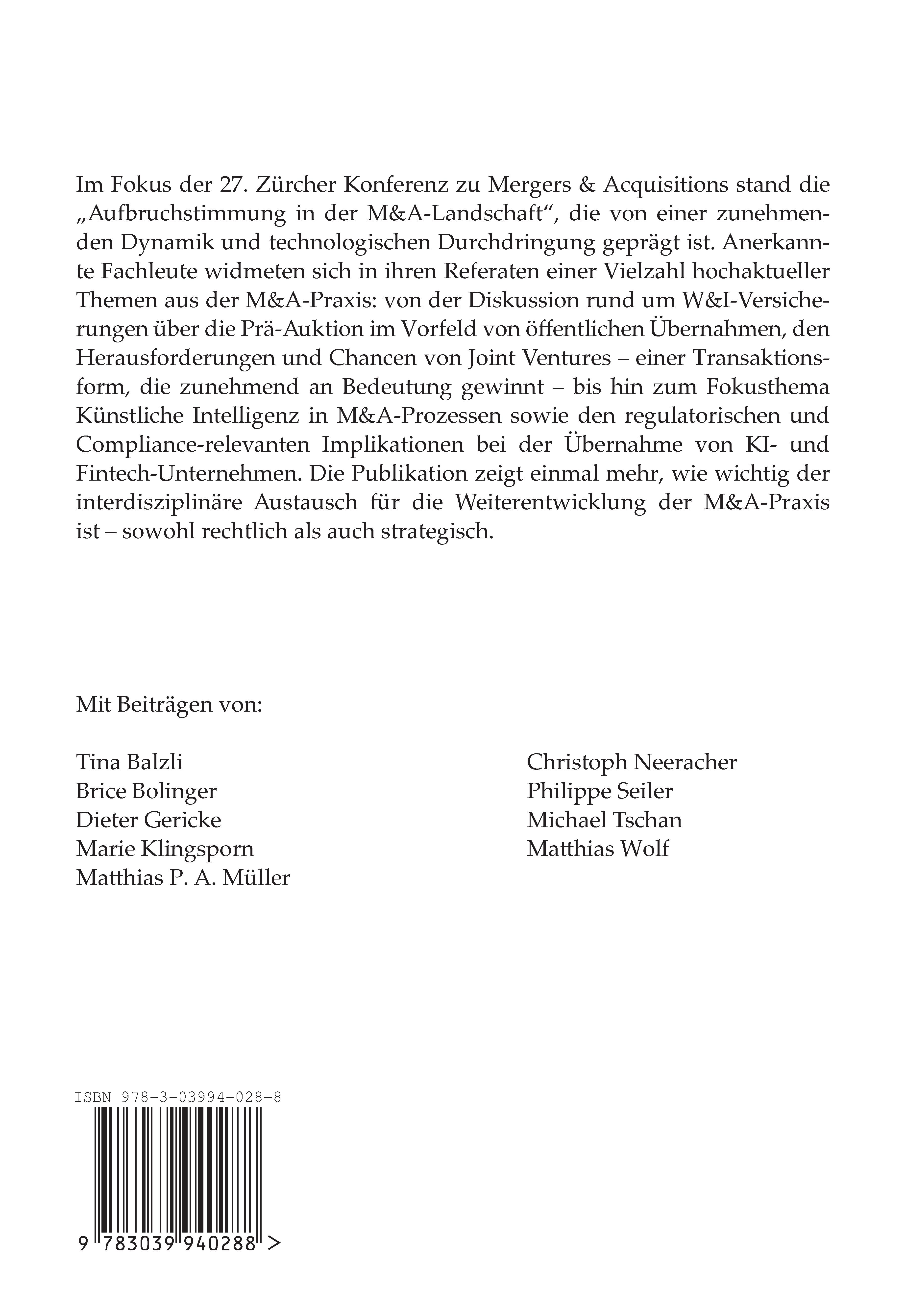 27. Zürcher Konferenz Mergers & Acquisitions Tagungsband 2024