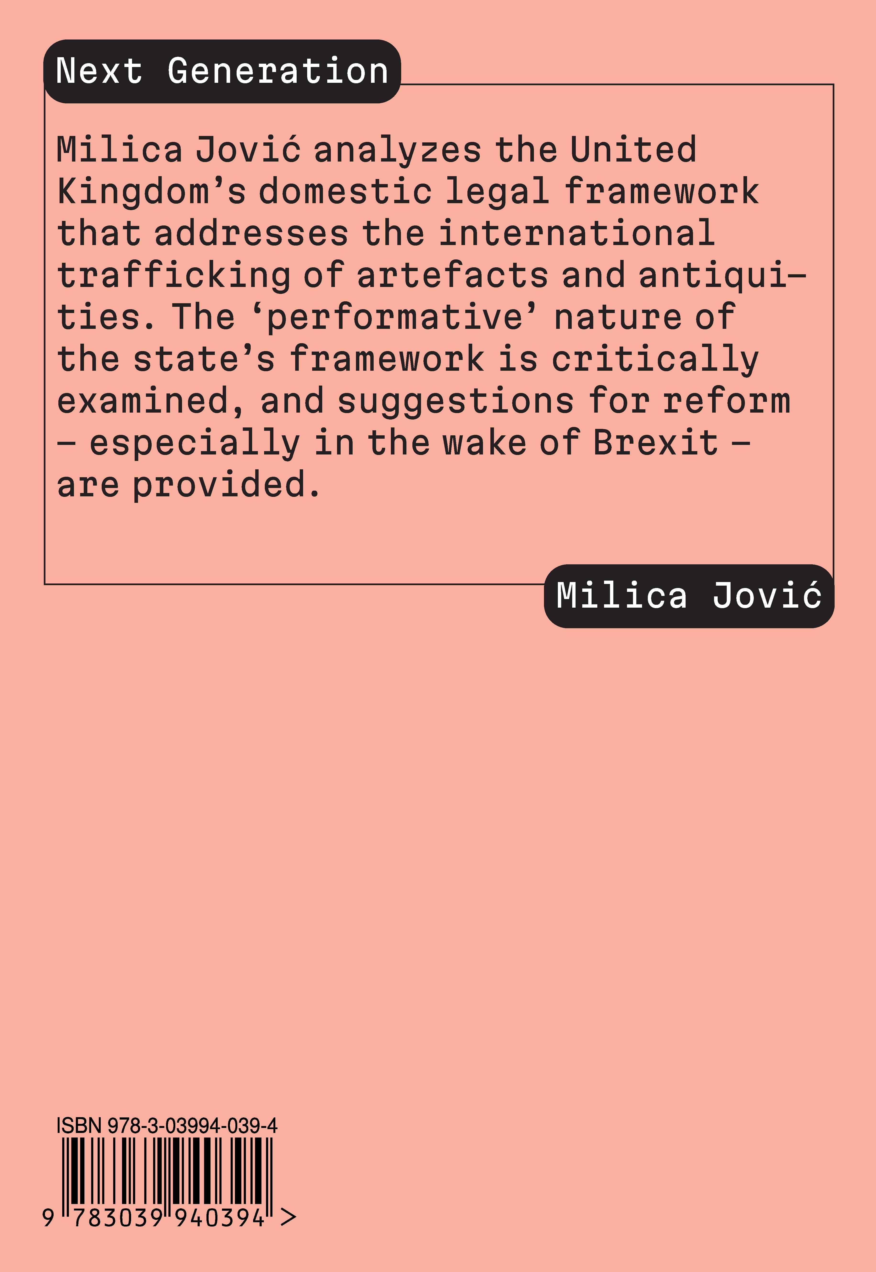 Milica Jovic analyzes the United Kingdom's domestic legal framework that addresses the international trafficking of artefacts and antiquities. The 'performative' nature of the state's framework is critically examined, and suggestions for reform - especially in the wake of Brexit - are provided.
