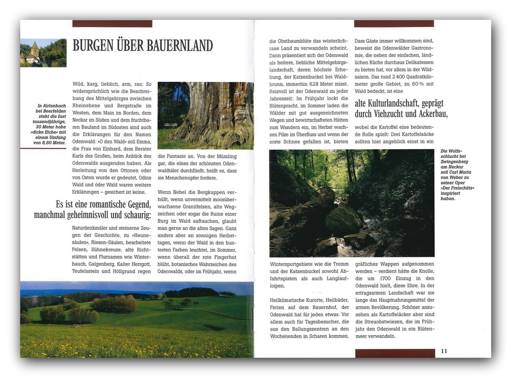 Mit seiner Obst- und Mandelblütenpracht wirkt der Frühling an der Bergstraße fast südländisch. Einzigartig sind die Erbacher Elfenbeinschnitzerei im Herzen des Odenwalds und die Jugendstilbauten auf der Darmstädter Mathildenhöhe. Praktische, handliche Reihe in 17 x 24 cm, zwischen Reiseführer und Bildband angesiedelt. Teilweise sind die Bücher in Softcover, manche auch in englischer Sprache lieferbar.