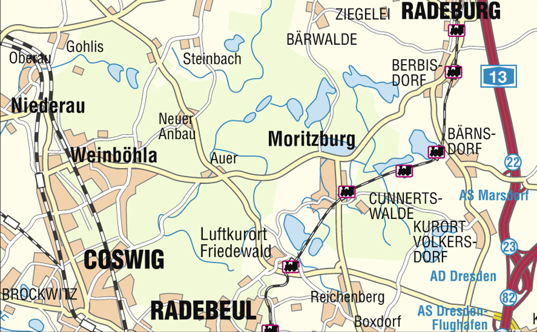 Umfasst das Gebiet des Moritzburger Teichgebietes mit Niederau, Weinböhla, Coswig Moritzburg, Berbisdorf, Bärnsdorf, Volkersdorf und Friedewald.