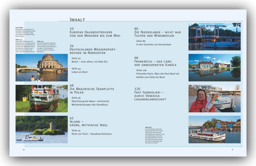 | Schlagworte | Abenteuer • Amsterdam • Berlin • Bildband • Devenish Island • Europa • Europa; Bildband • Fluss • Frankreich • Gondel • Grachten • Hardcover, Softcover / Reisen/Bildbände/Europa • Hausboot • Hausbootrevier • Hausboot / Wohnboot • Holland • Hotel du Nord • Irland • Kanalbau • Masuren • Masurische Seenplatte • MIDI • Moltkebrücke • Müritz-Havel-Wasserstraße • Niederlande • Paris • Polen • Pont-Neuf • Reisebildband • Seine • Spree • Vecht • Venedig |