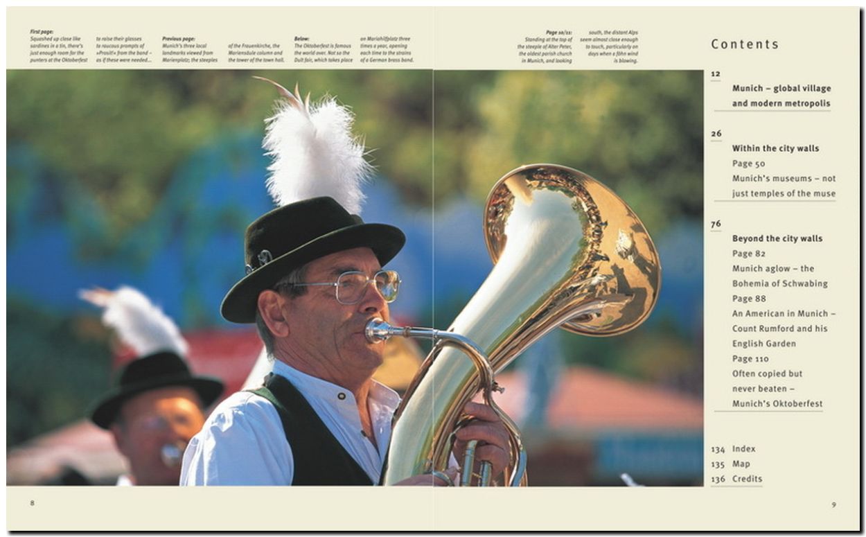 Rund 200 Bilder zeigen die bayerische Landeshauptstadt in ihrer ganzen Vielfalt, vier Specials berichten über das größte Volksfest der Welt, das Oktoberfest, die Münchner Museumslandschaft, den Initiator des Englischen Gartens, Graf Rumford, und das mondäne Schwabing um die Jahrhundertwende.