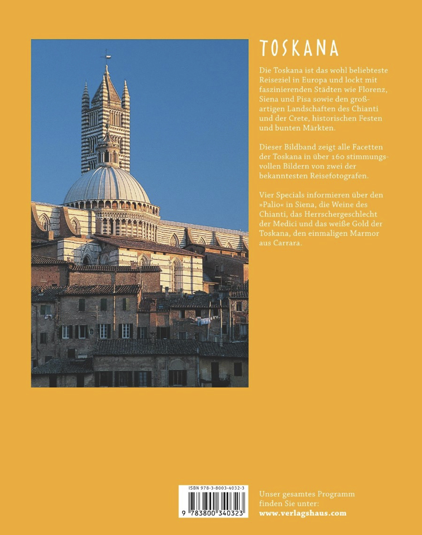| Schlagworte | Alpuanische Alpen • Arezzo • Arno • Asciano • Bildband • Carrara • Chianti • Chiusere • Collodi • Colonnata • Crete • Elba • Florenz • Giglio • Gorgona • Greve • Hardcover, Softcover / Reisen/Bildbände/Europa • Italien • Lucca • Marsiliana • Montecatini Terme • Pisa • Pitigliano • Portoferraio • Radda • Reisebildband • San Gimignano • Siena • Sorano • Toskana • Toskana; Bildband • Volpia |