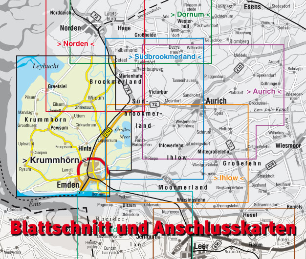 19 Ortspläne der Gemeinde Krummhörn in 1:7.500 und Freitzeitkarte 1:30.000 inkl. Radrouten und Wanderwegen