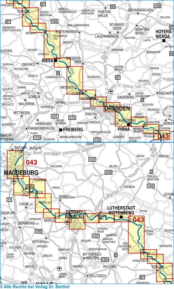 | Schlagworte | Barby Gommern Aken Magdeburg • D-Netz Route D10 Eurovelo 7 • Dresden Pirna Riesa Torgau Meissen • Elbe, Karte; Radkarte • Elbe; Radkarten • Elberadweg, Elbe-Radweg, Elbe-Radwanderweg • Karten, Globen / Karten, Stadtpläne, Atlanten/Deutschland • Kurort Rathen HÅÖensko Bad Schandau Königstein/Sächs. Schweiz • Kurort Rathen Hrensko Bad Schandau Königstein/Sächs. Schweiz • Kurort Rathen Hřensko Bad Schandau Königstein/Sächs. Schweiz • Lutherstadt Wittenberg Dessau-Roßlau • Radebeul Coswig Heidenau • Stadt Wehlen Nünchritz Mühlberg/Elbe • Strehla Belgern Diera-Zehren Elster (Elbe) Coswig (Anhalt) • Wörlitz Prettin Dommitzsch Schönebeck |
