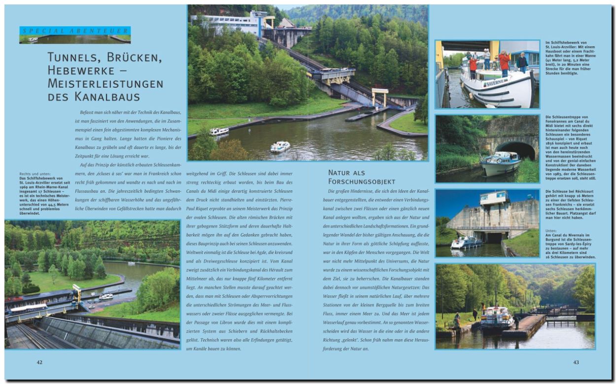 „Abenteuer – Mit dem Hausboot durch Frankreich“ zeigt in über 250 Bildern die Landschaften und idyllischen Dörfer und Städte entlang der Flüsse und Kanäle Frankreichs sowie das Leben an Bord.