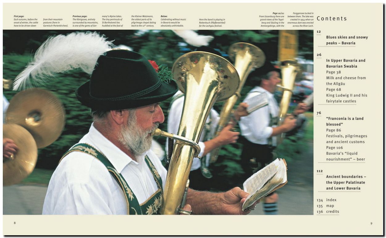 Über 200 Bilder zeigen ganz Bayern in seiner Urwüchsigkeit und Vielfalt, vier Specials berichten über das Nationalgetränk Bier, die traditionellen Feste und Bräuche, die Märchenschlösser Ludwigs II. und darüber, wie aus Milch Käse wird.
