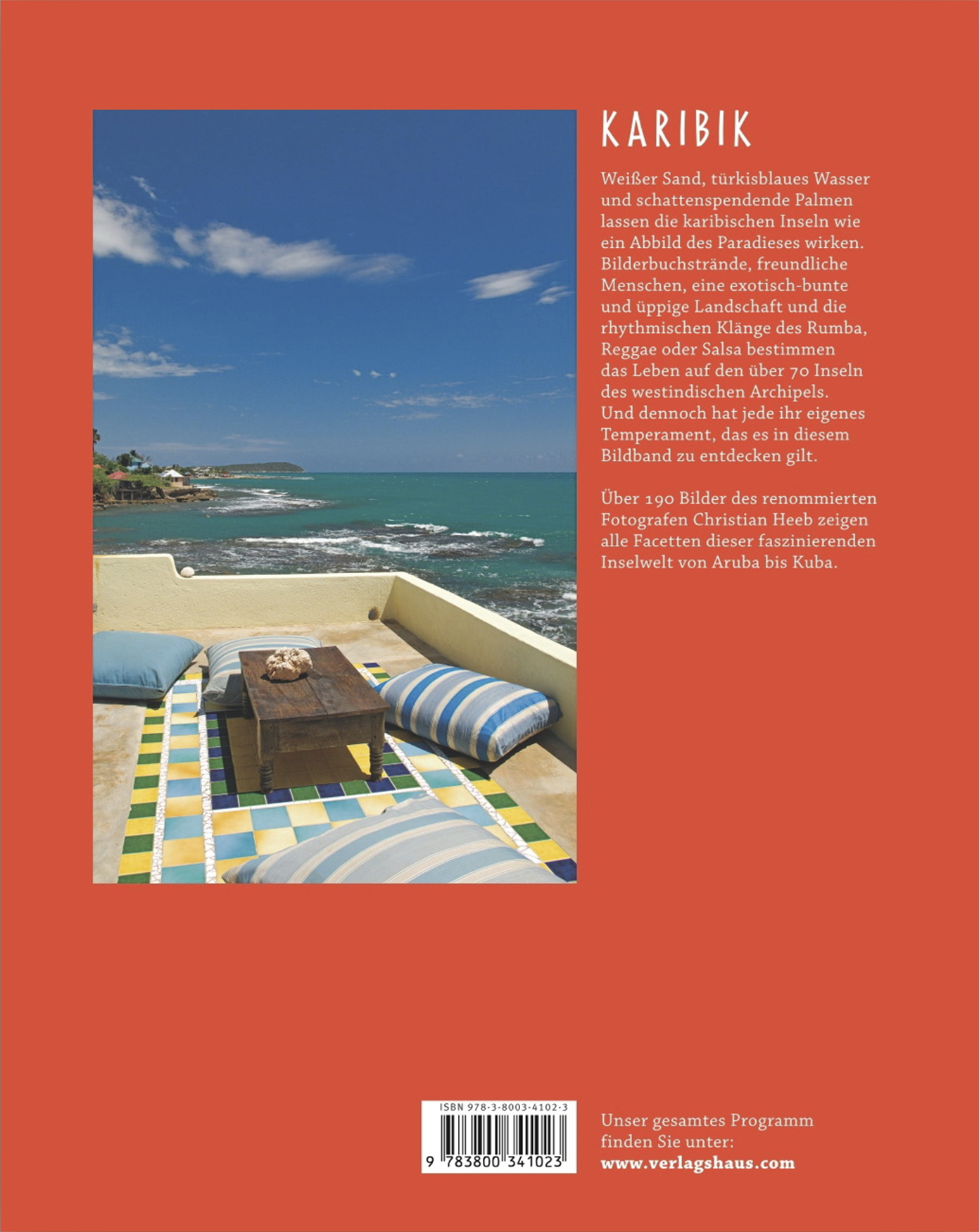 | Schlagworte | ABC-Inseln • Antigua • Aruba • Barbados • Basse Terre • Bildband • British Virgin Islands • Curacao • Dominica • Dominikanische Republik • Grenada • Grenadinen • Haiti • Hardcover, Softcover / Reisen/Bildbände/Nordamerika, Mittelamerika • Havanna • Jamaica • Karibik • Karibik; Bildband • Kuba • Martinique • Palm Island • Pitons • Playa Santa Maria del Mar • Port Antonio • Puerto Rico • Reisebildband • St. Barth • St. George's • Trinidad & Tobago • Trinidad & Tobago • Virgin Islands |