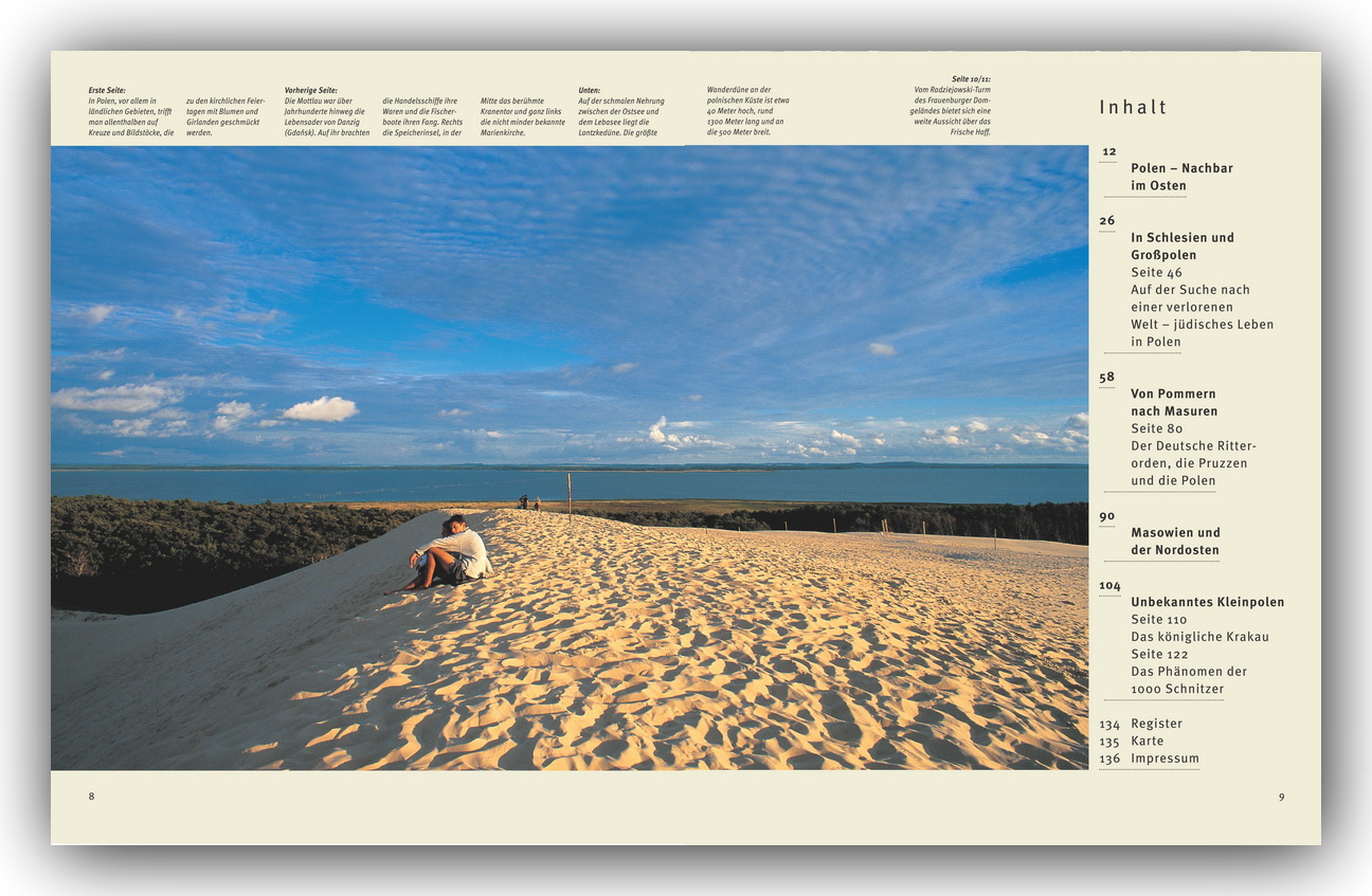 Über 180 Bilder zeigen Polen in seiner Vielfalt und vier Specials berichten über das Land der 1000 Schnitzer, das königliche Krakau, den Deutschen Ritterorden und von der Suche nach einer verlorenen Welt - dem jüdischen Leben in Polen.